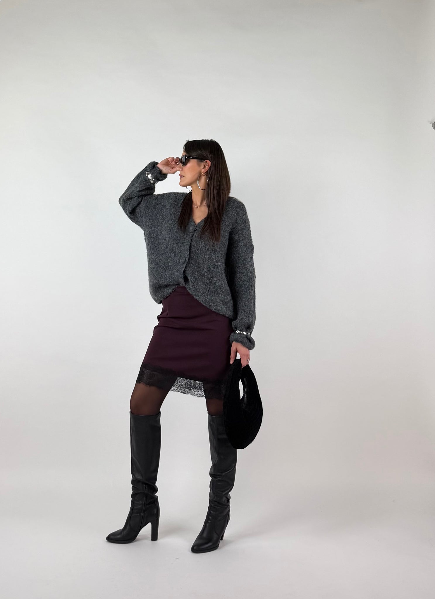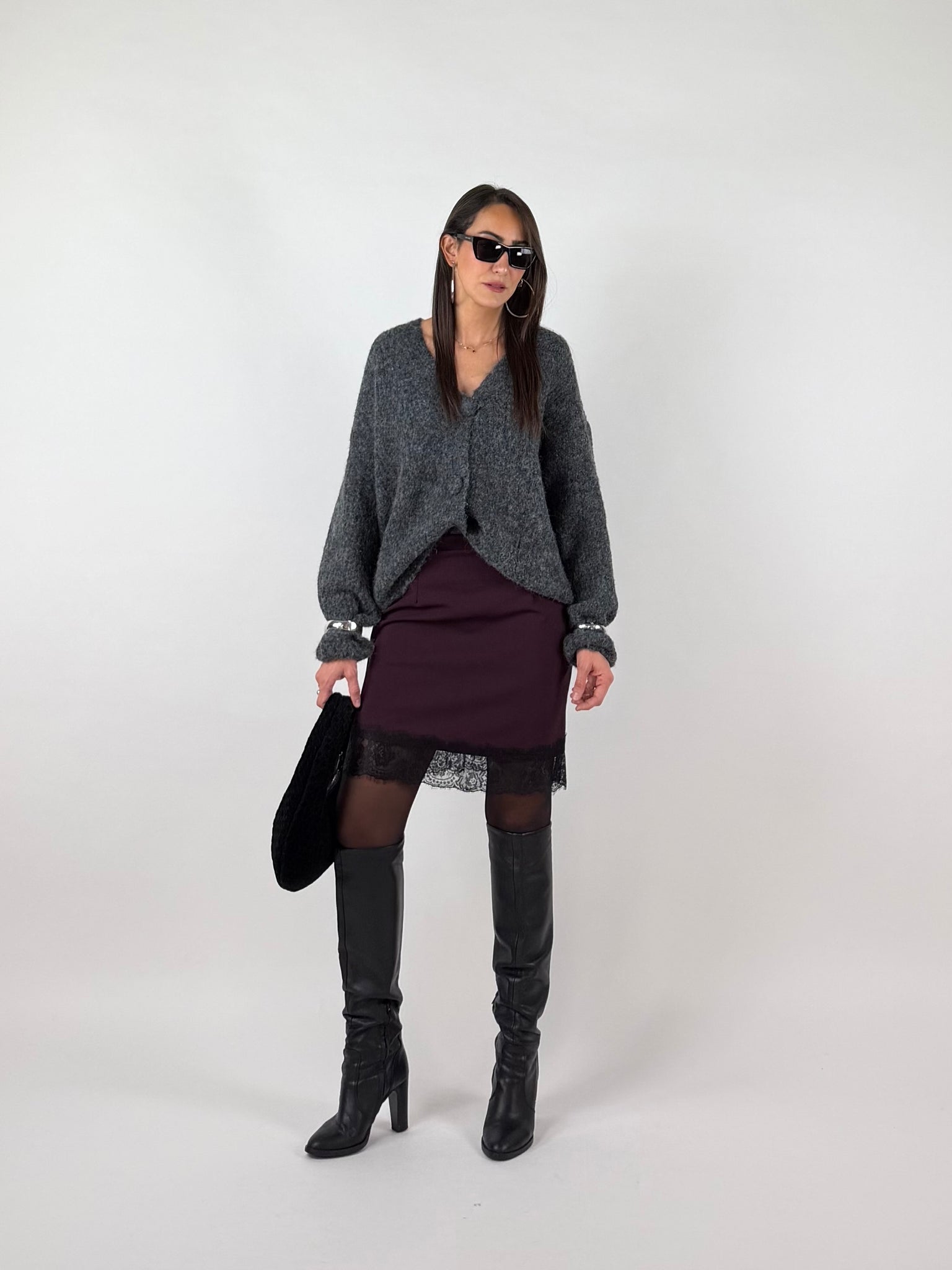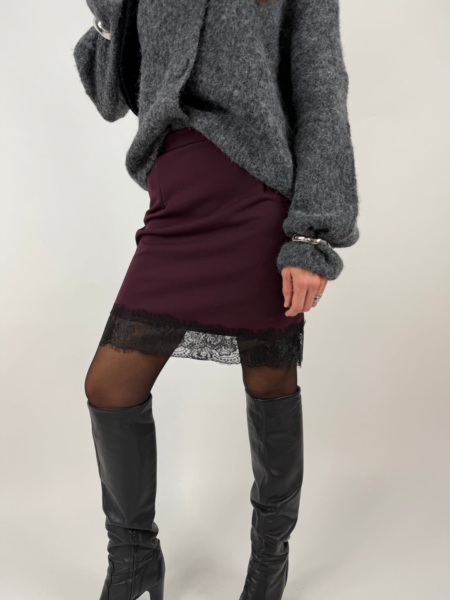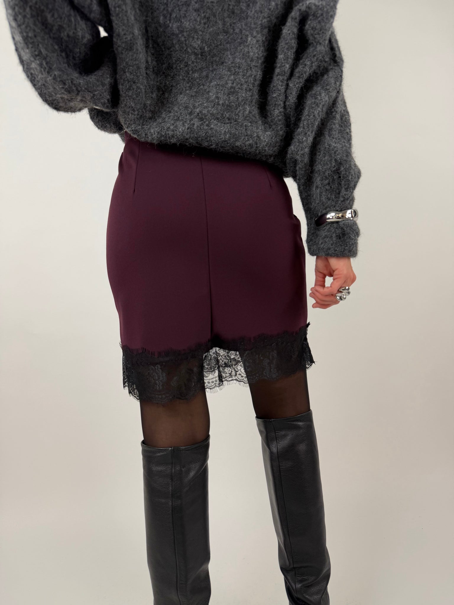 Gonna in tessuto elasticizzato, dettaglio applicazione pizzo sull orlo. SM: 38-40 ML 42-44