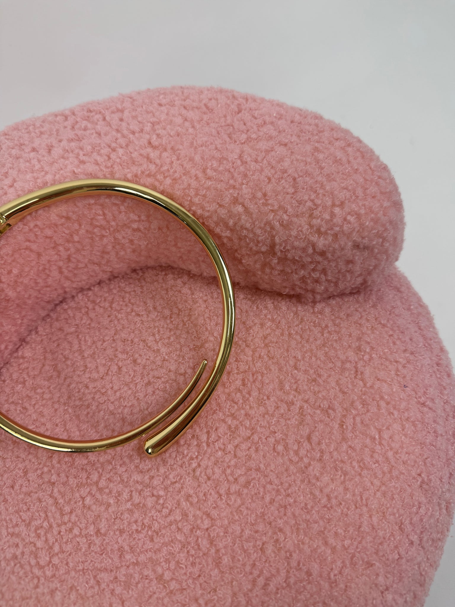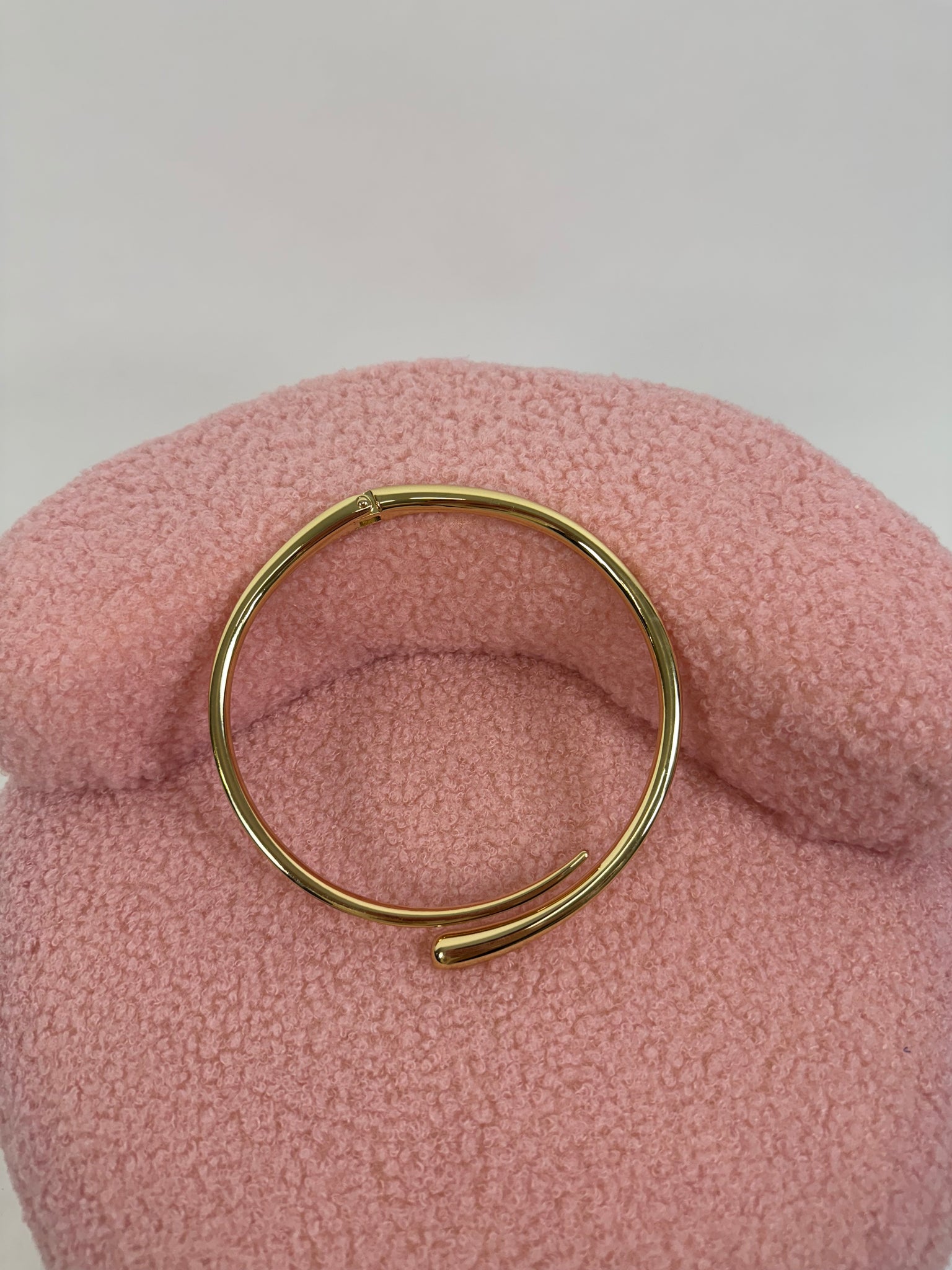 Collana girocollo rigida con apertura frontale. Si indossa allargando le estremità per inserirla attorno al collo. Composizione: ferro lega di zinco