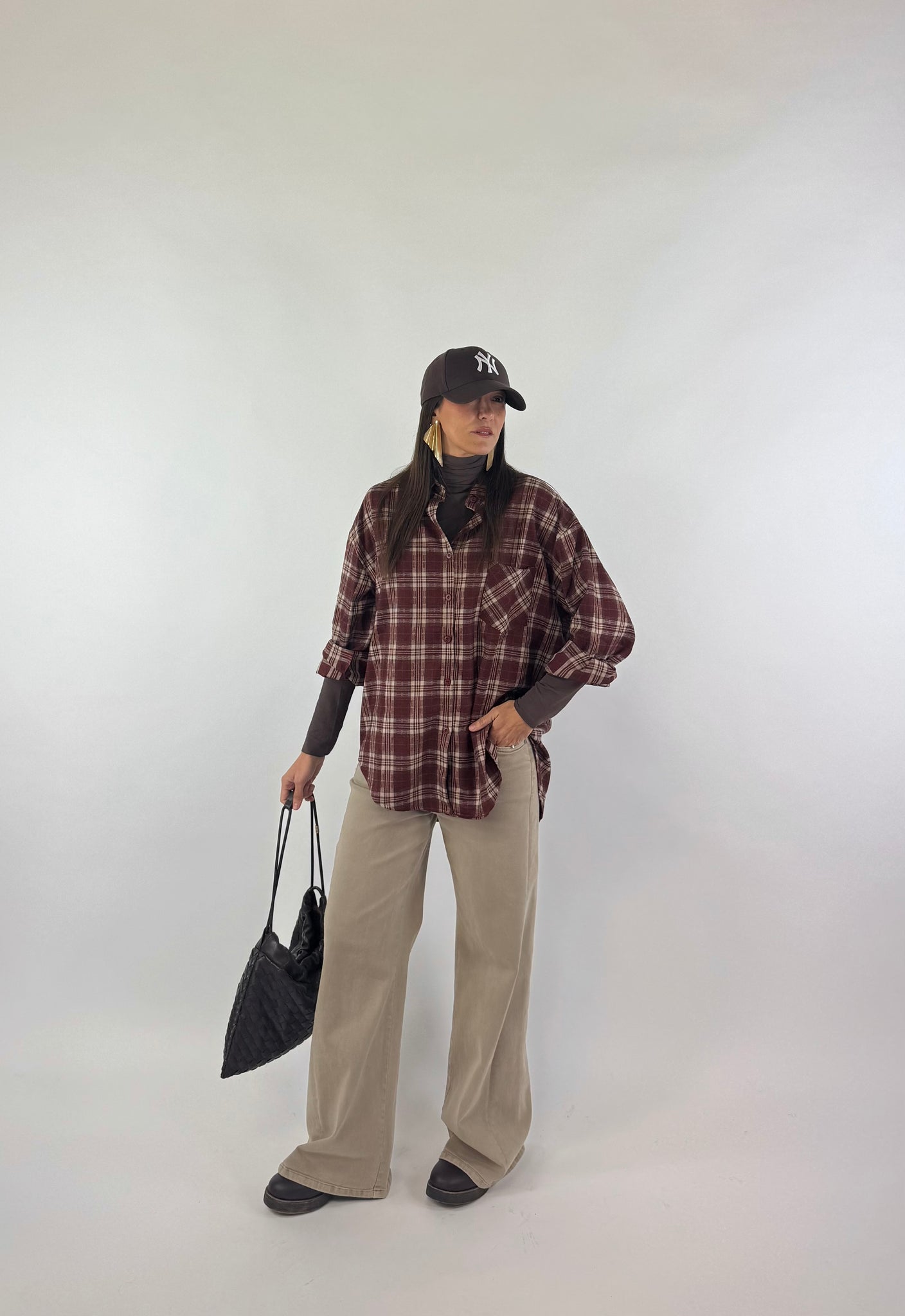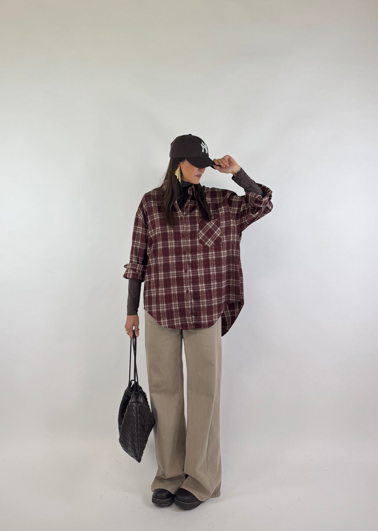 Camicia fit morbido, orlo stondato, fantasia check rossa e crema. 65% caldo cotone. Taglia unica veste da 38 a 46.