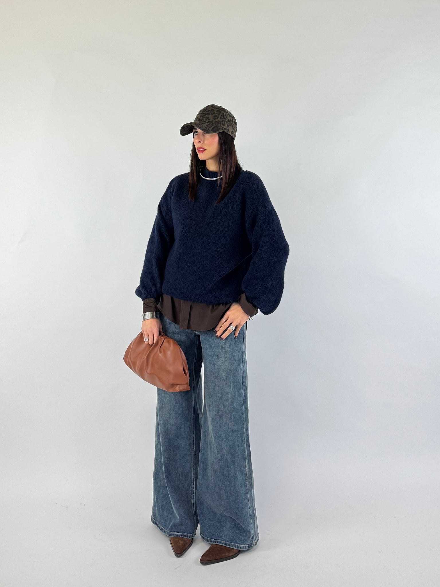 Camicia dettaglio botton down, fit morbido con orlo stondato,  più lunga dietro, leggermente elasticizzata. Taglia unica veste da 38 a 46  (70% cotone)
