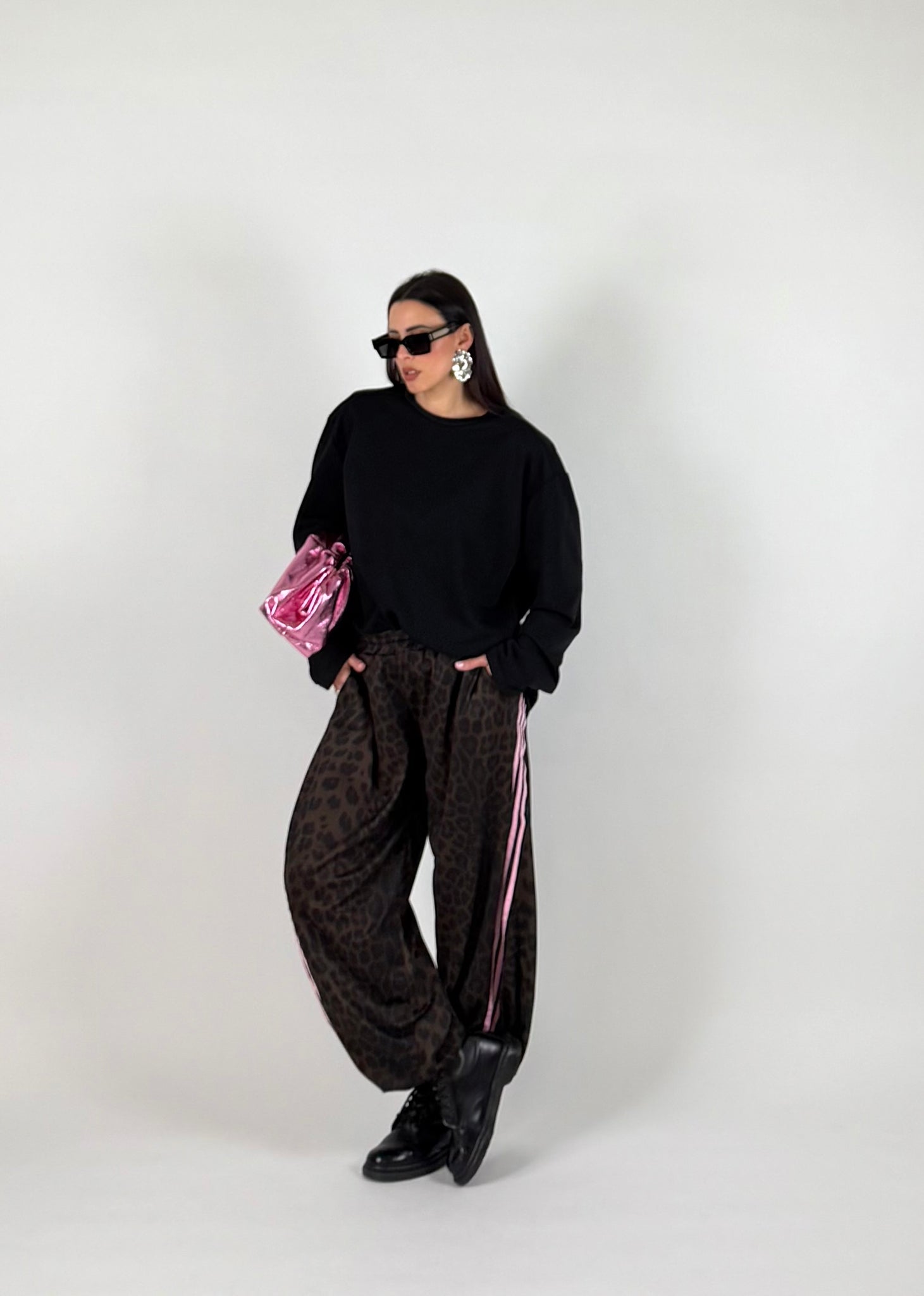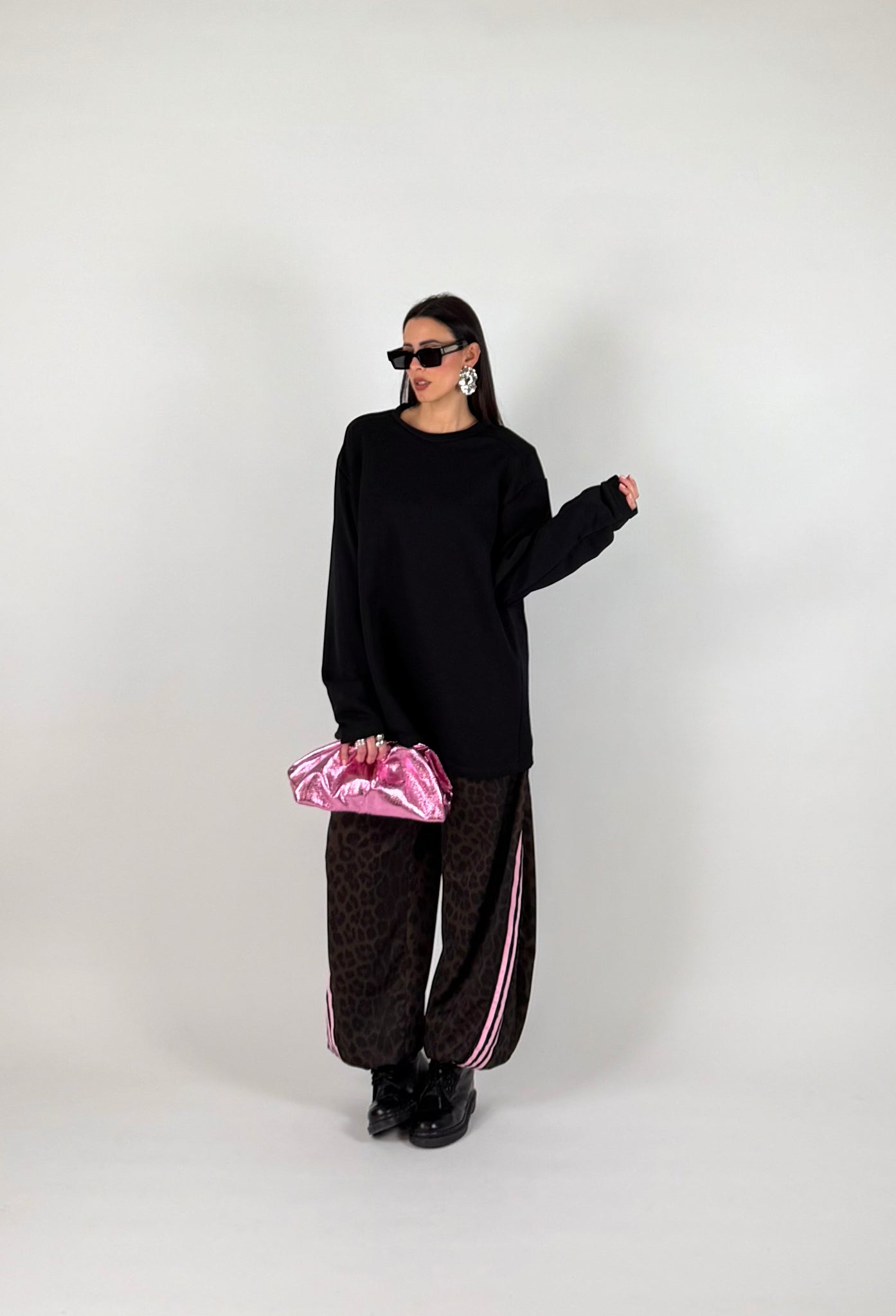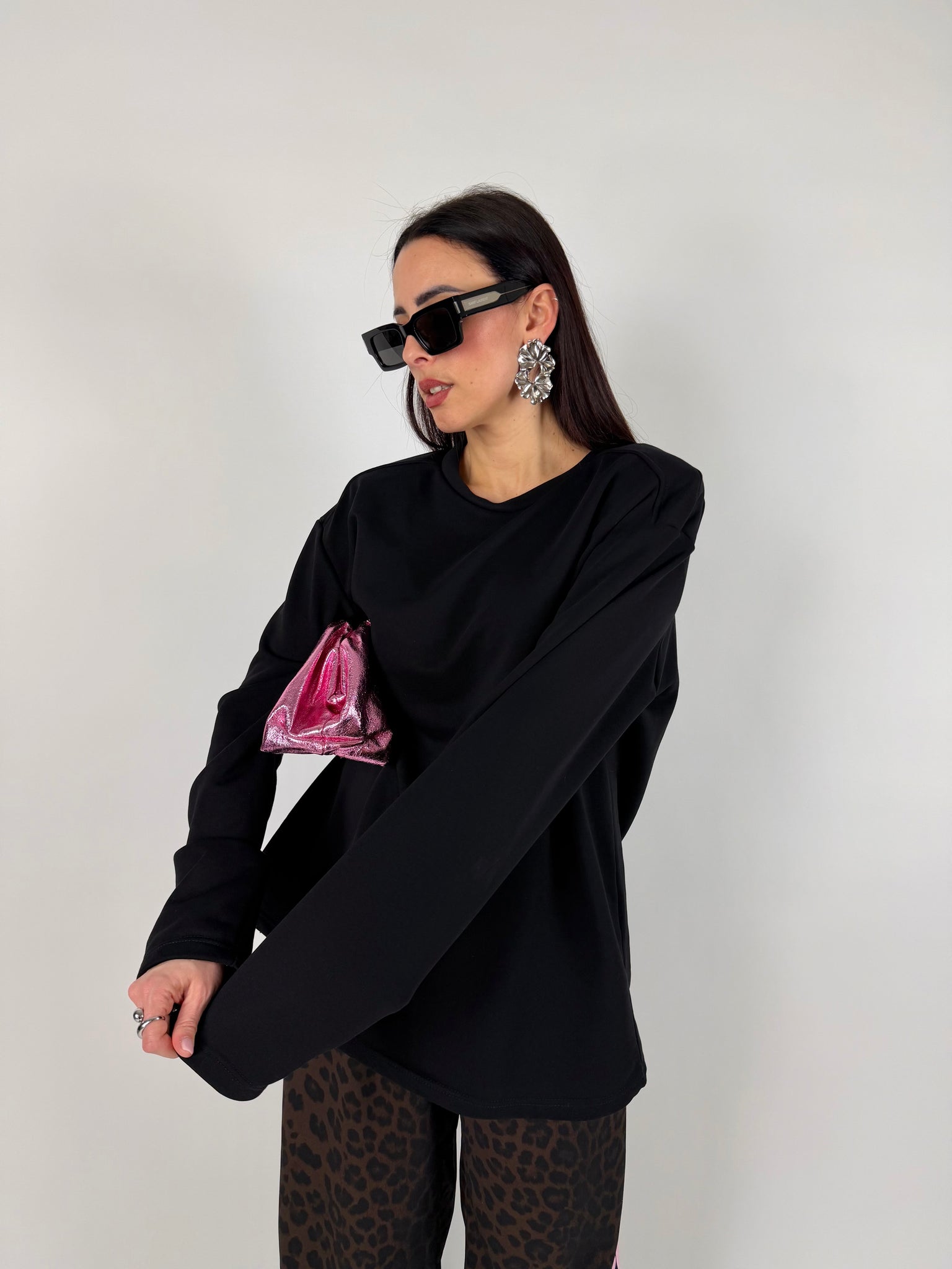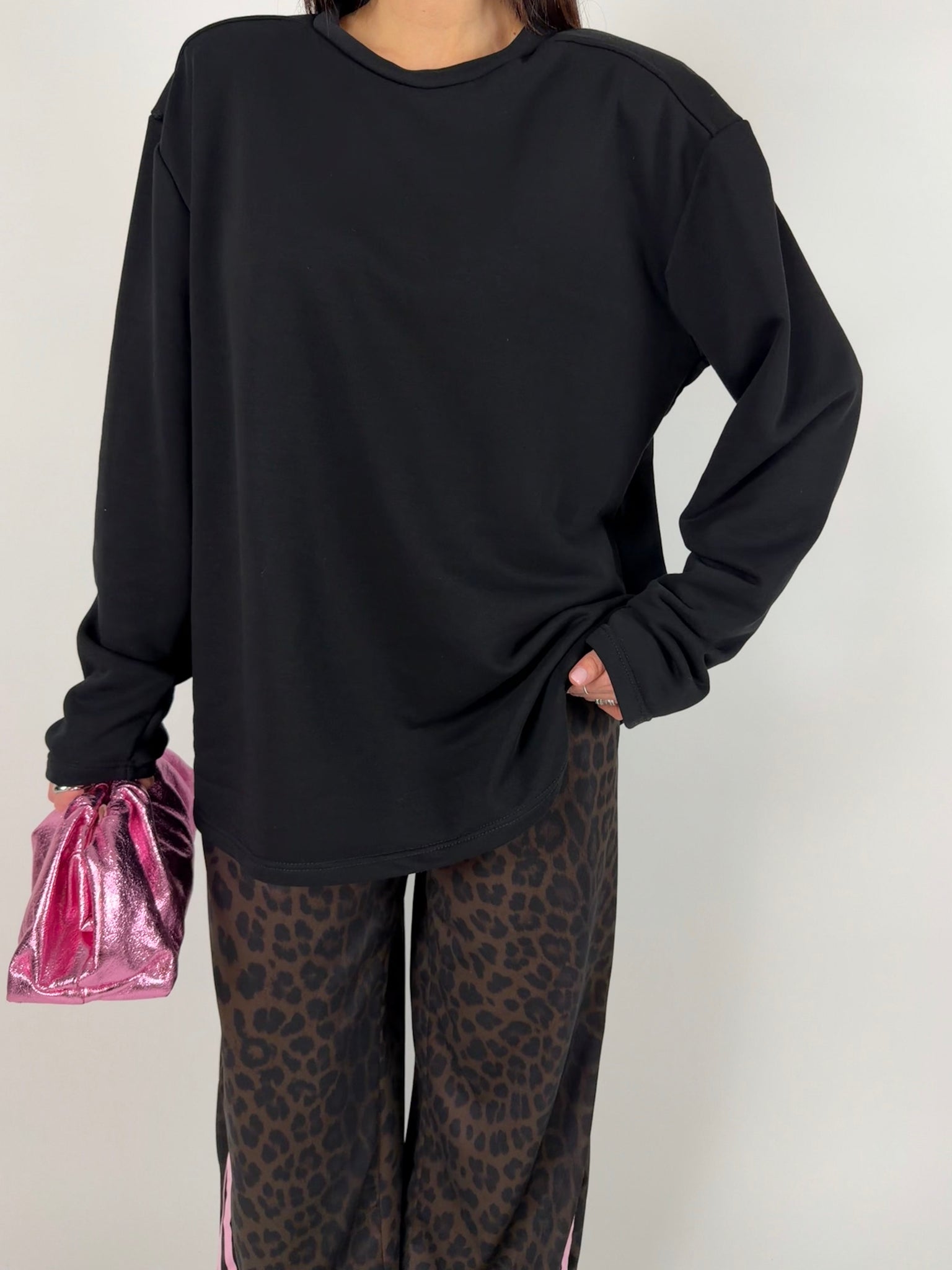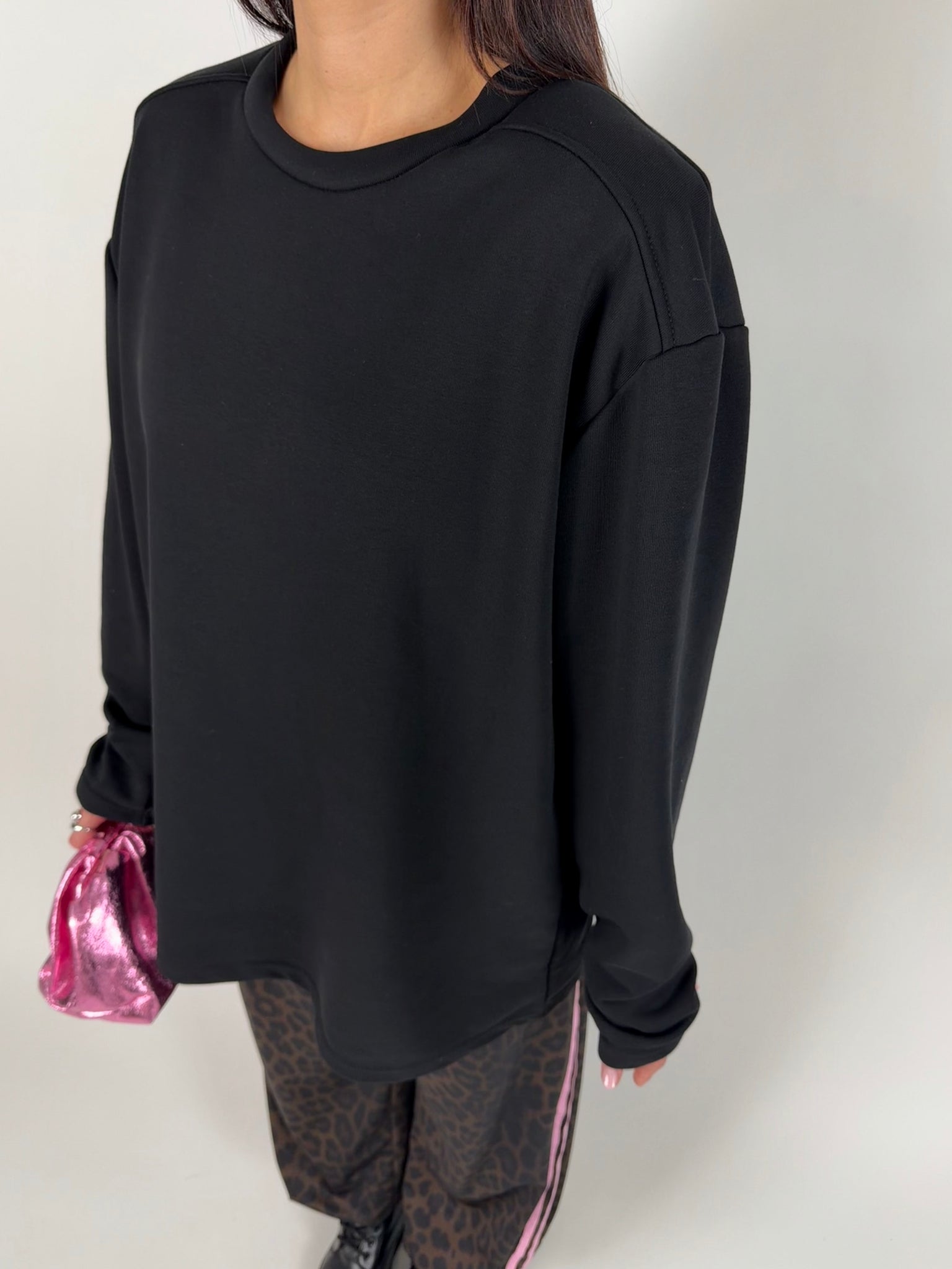 Felpa garzata girocollo, maniche lunghe, vestibilità over, spalline leggermente imbottite. Taglia unica veste dalla 38 a 48