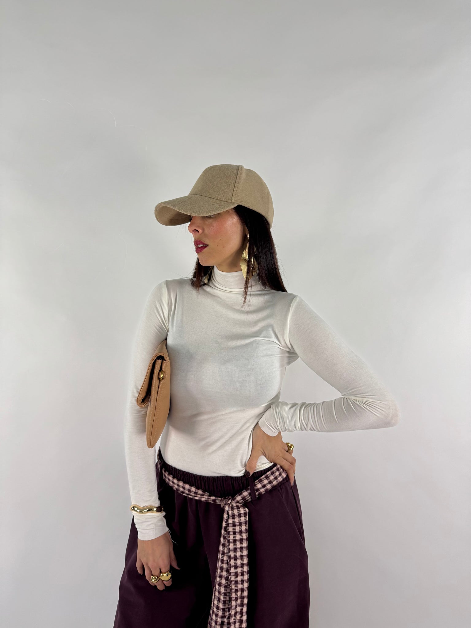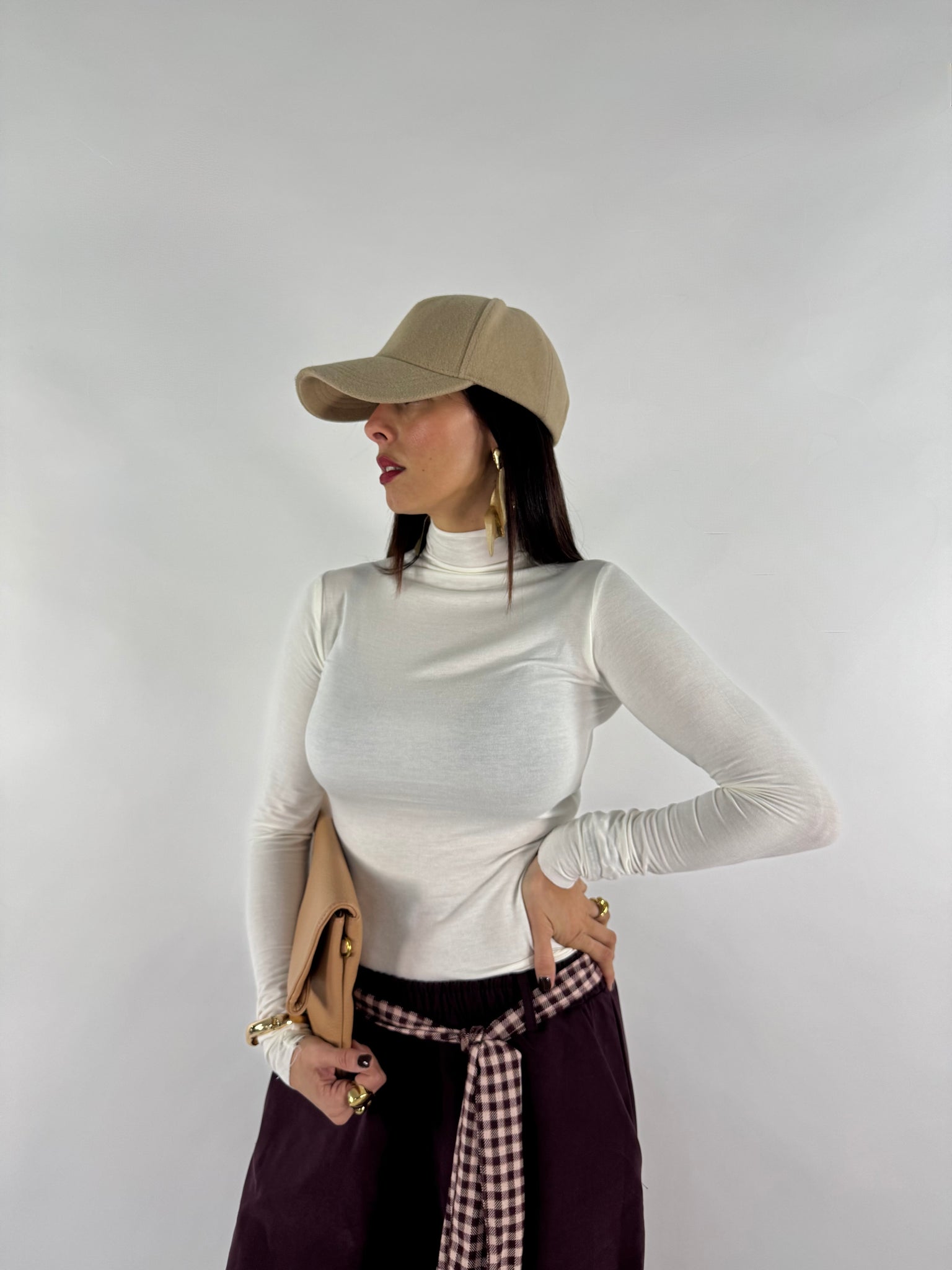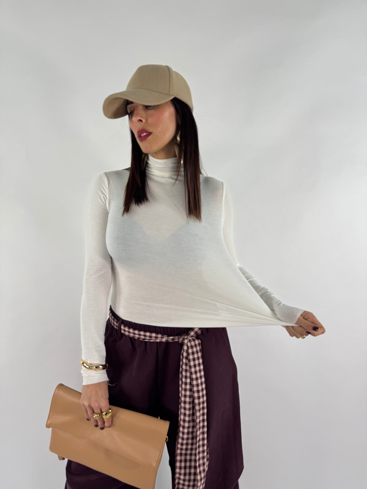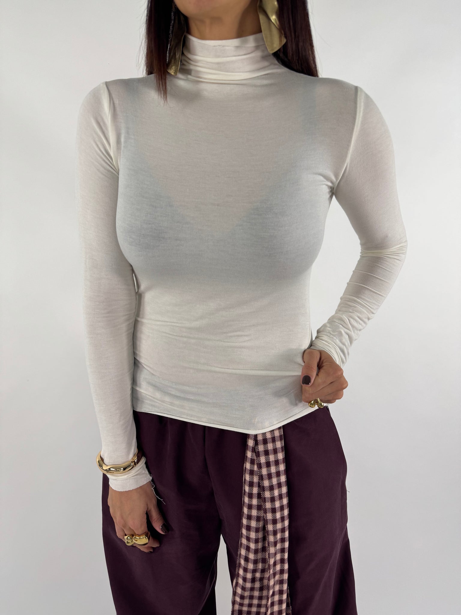 Maglia morbida collo alto. 65% viscosa elasticizzata. Taglia unica veste da 38 a 46