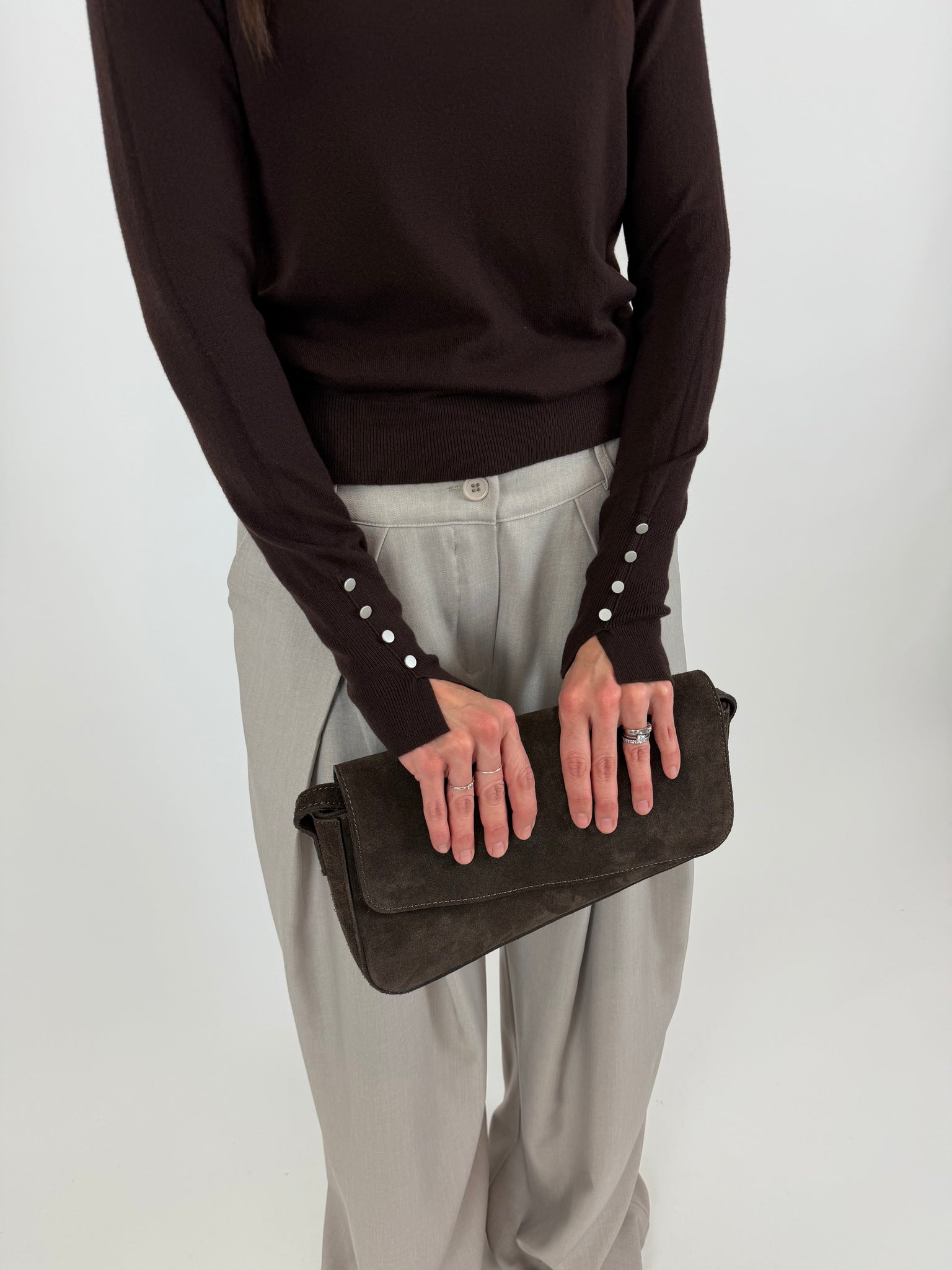 Maglioncino in viscosa dal design essenziale, pensato per unire comfort e stile. Il tessuto è morbido e piacevole, ideale da indossare in ogni stagione. La linea pulita lo rende un capo versatile e facile da abbinare, mentre i polsi con spacchetti e bottoncini in silver satin decorativi aggiungono un dettaglio raffinato che valorizza anche i look più semplici. Taglia unica veste da 38 a 46