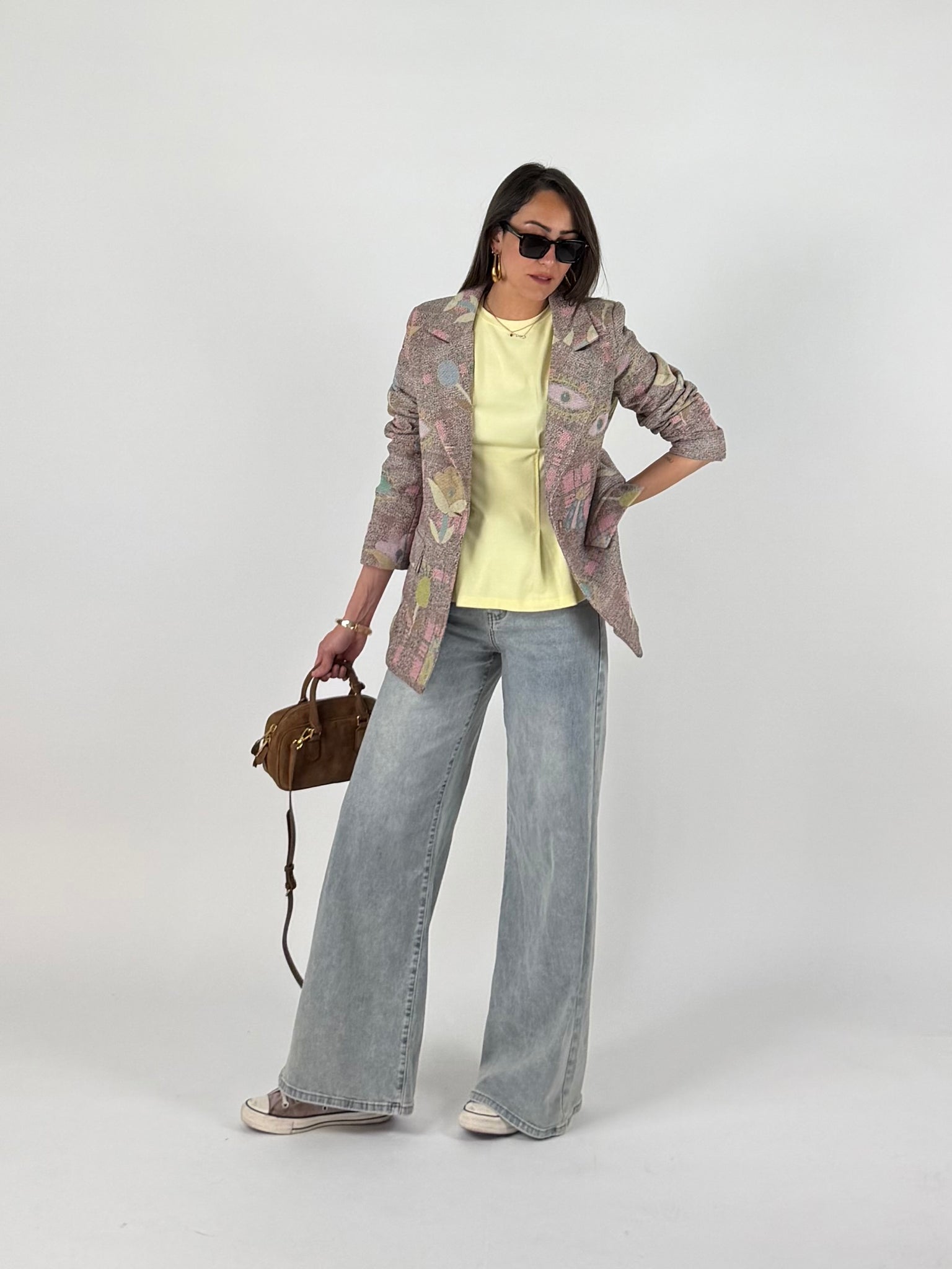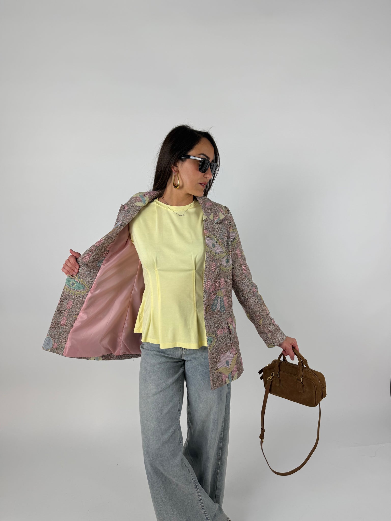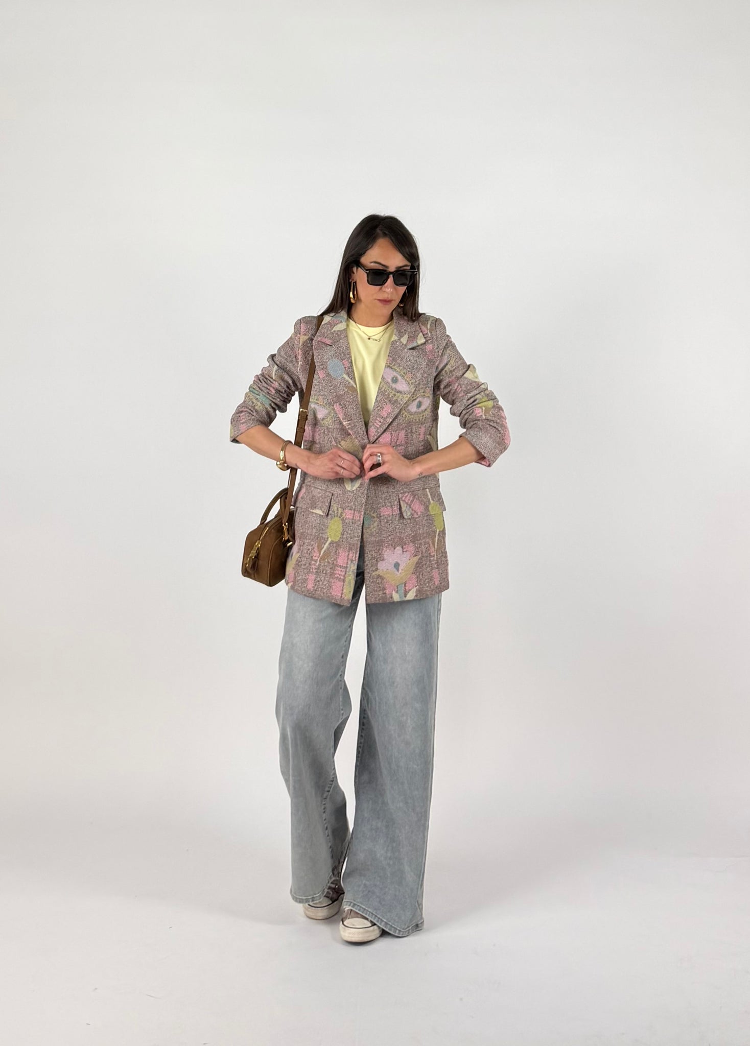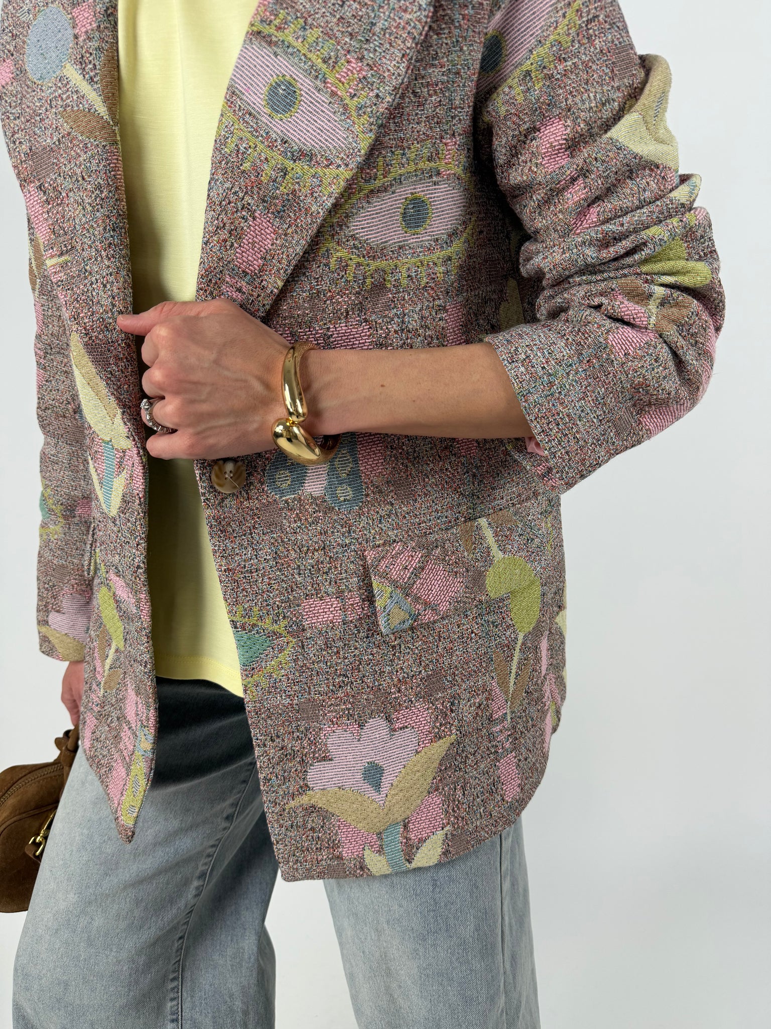 Blazer in tweed, effetto tridimemsionale, tela rinforzata multicolore, foderato internamente. SM : 38-42 ML: 44-46