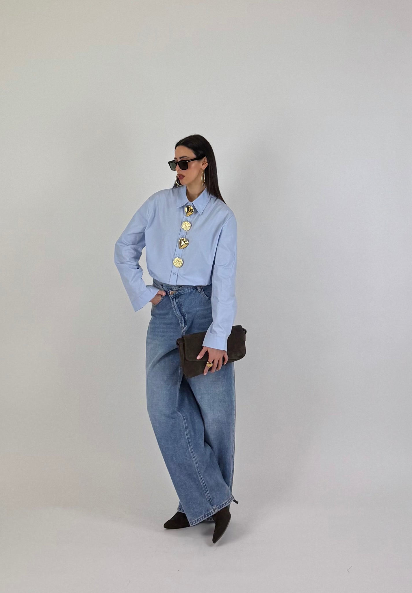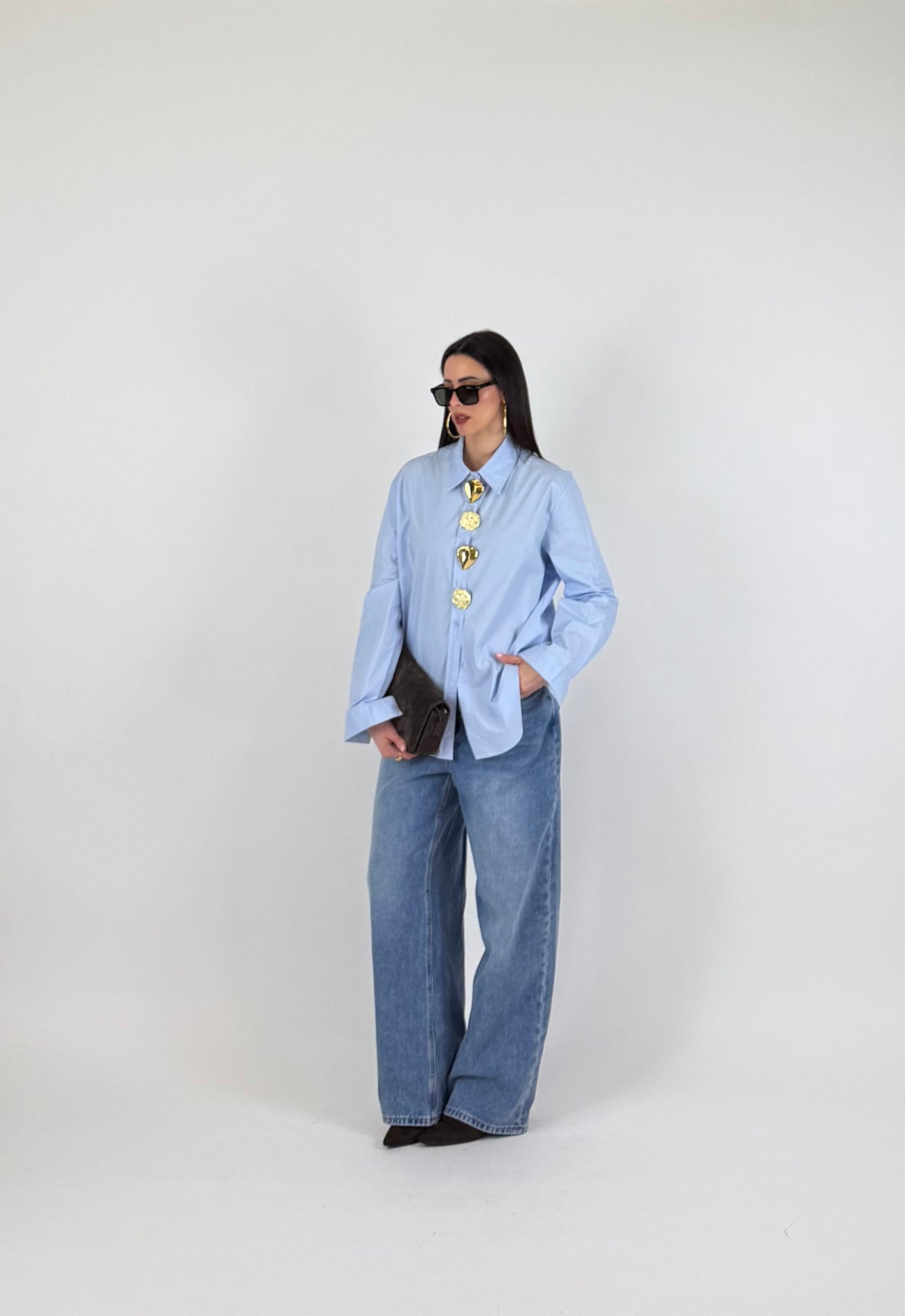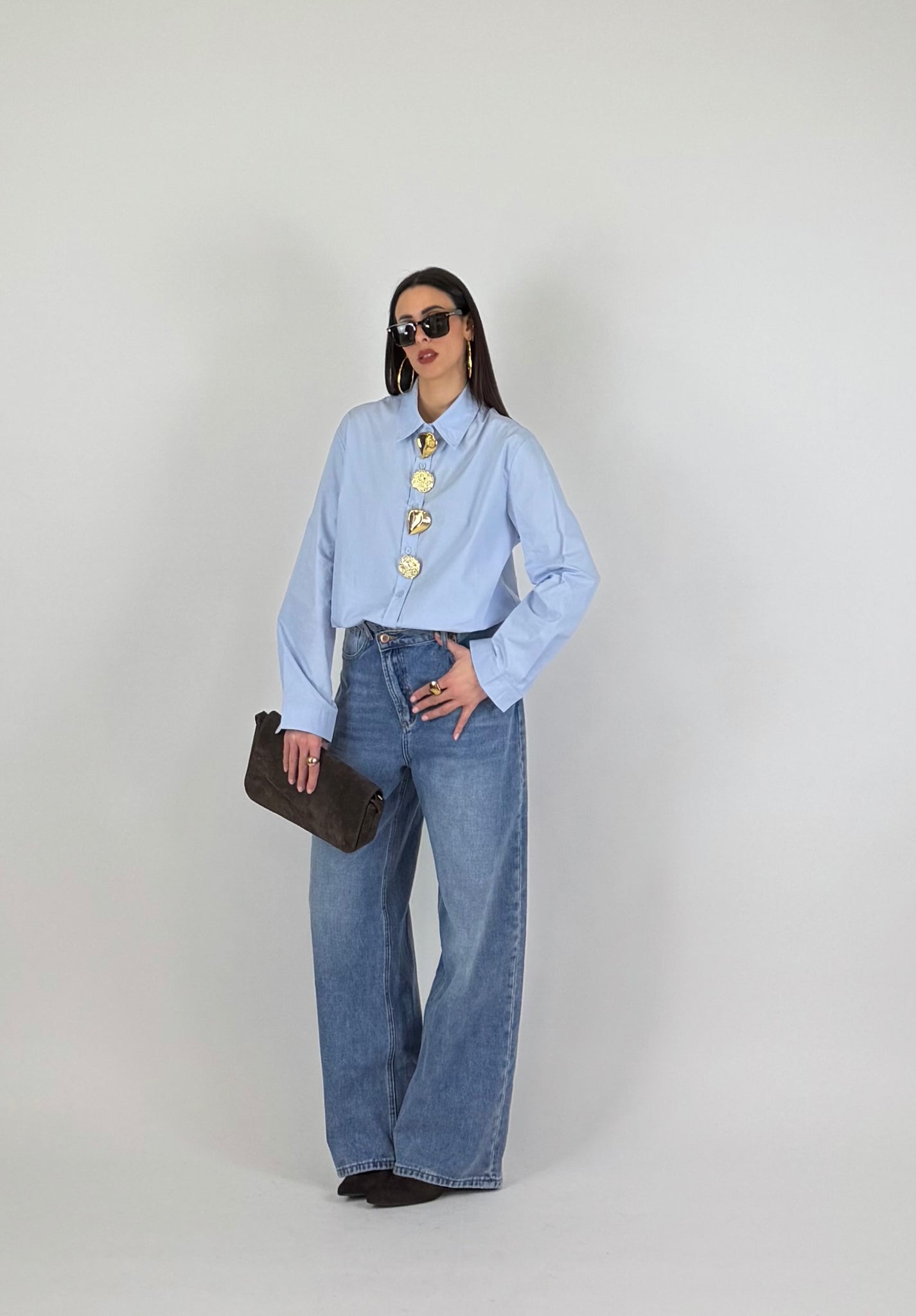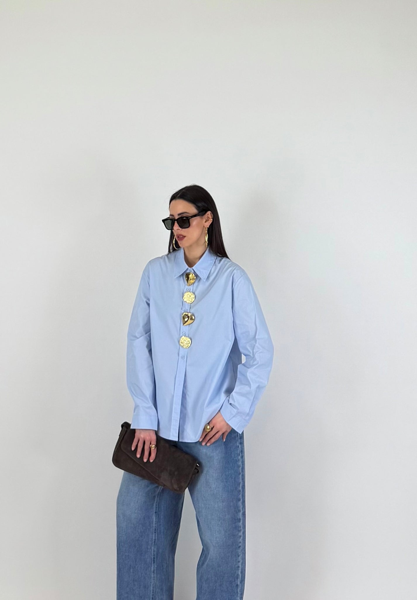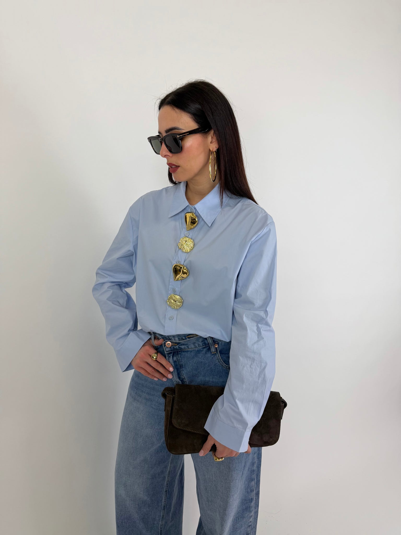 Camicia regular fit, orlo stondato, dettaglio spille placcate oro, removibili. Taglia unica veste da 38 a 46