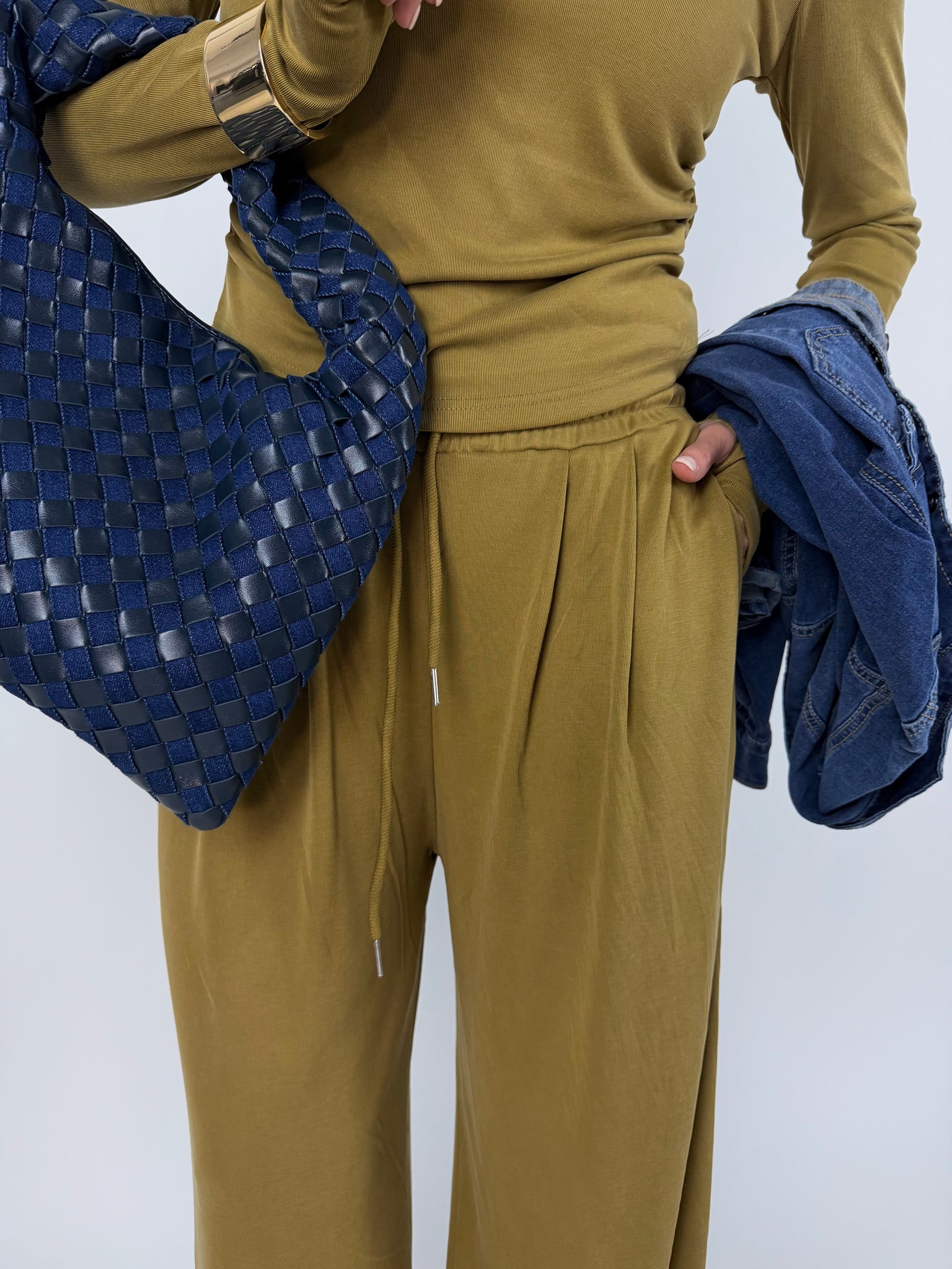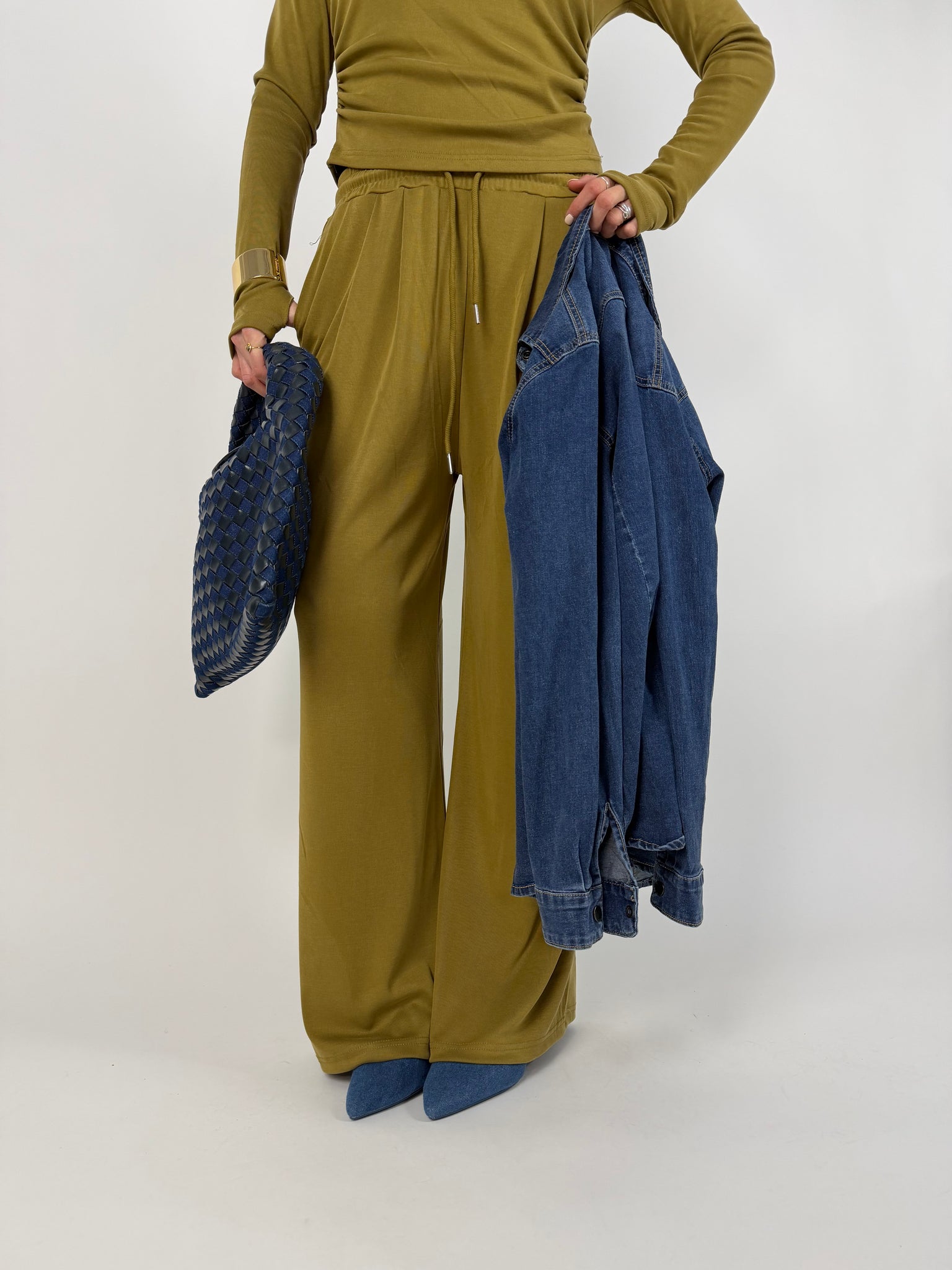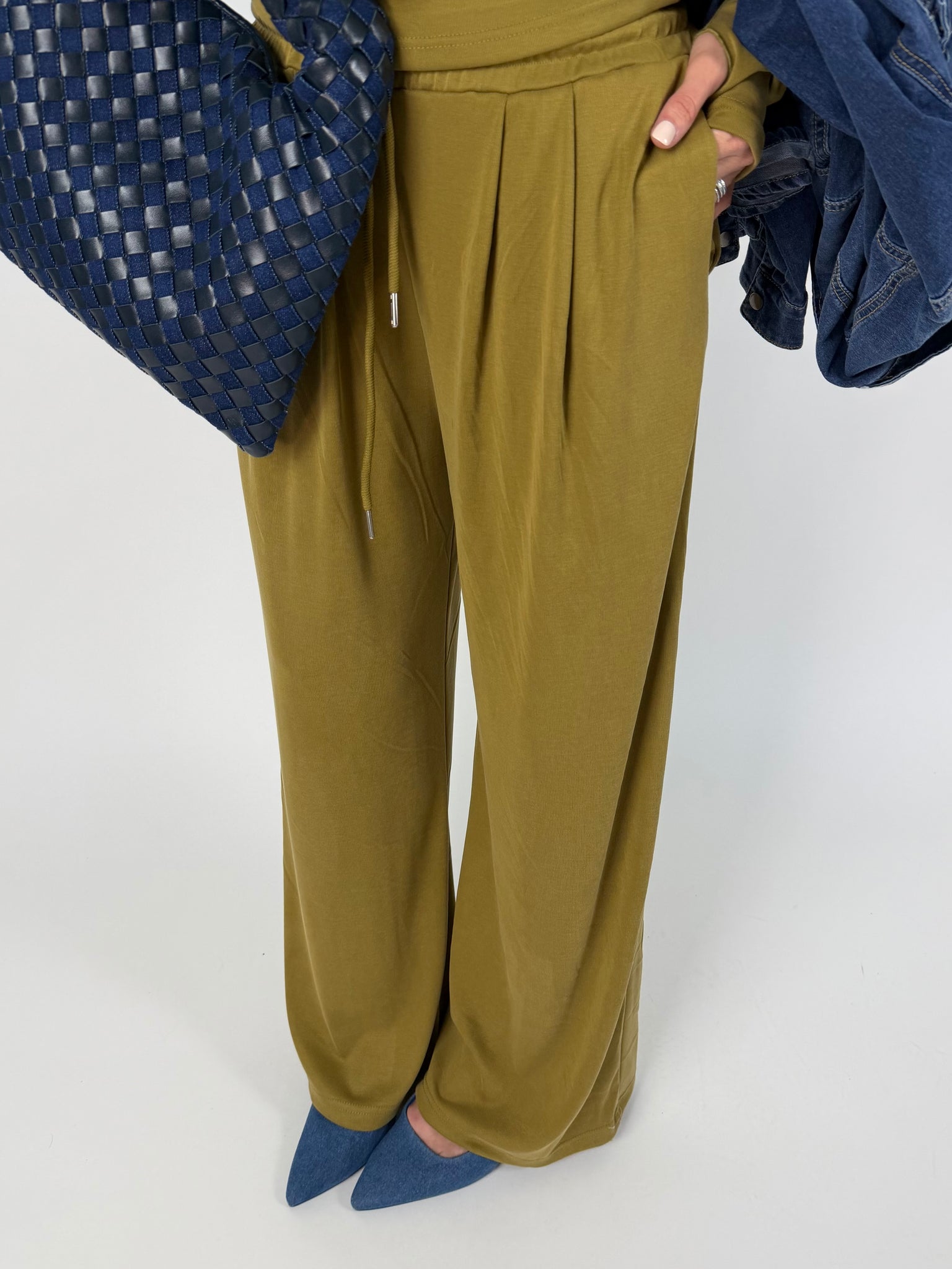 -pantalone taglio a palazzo, morbido in gamba con elastico molto estensibile.