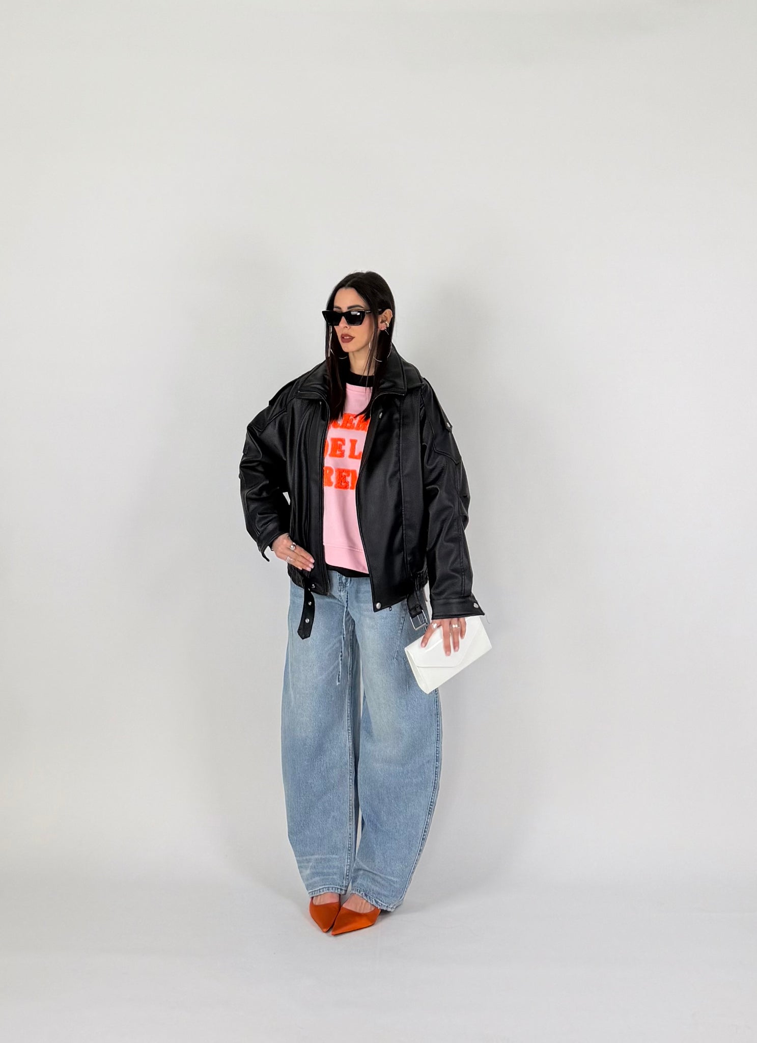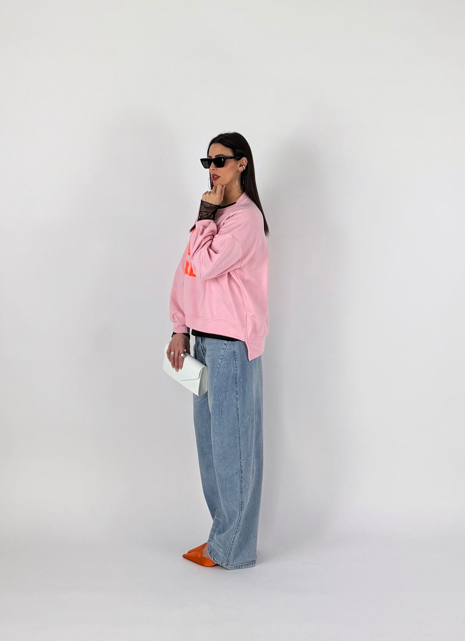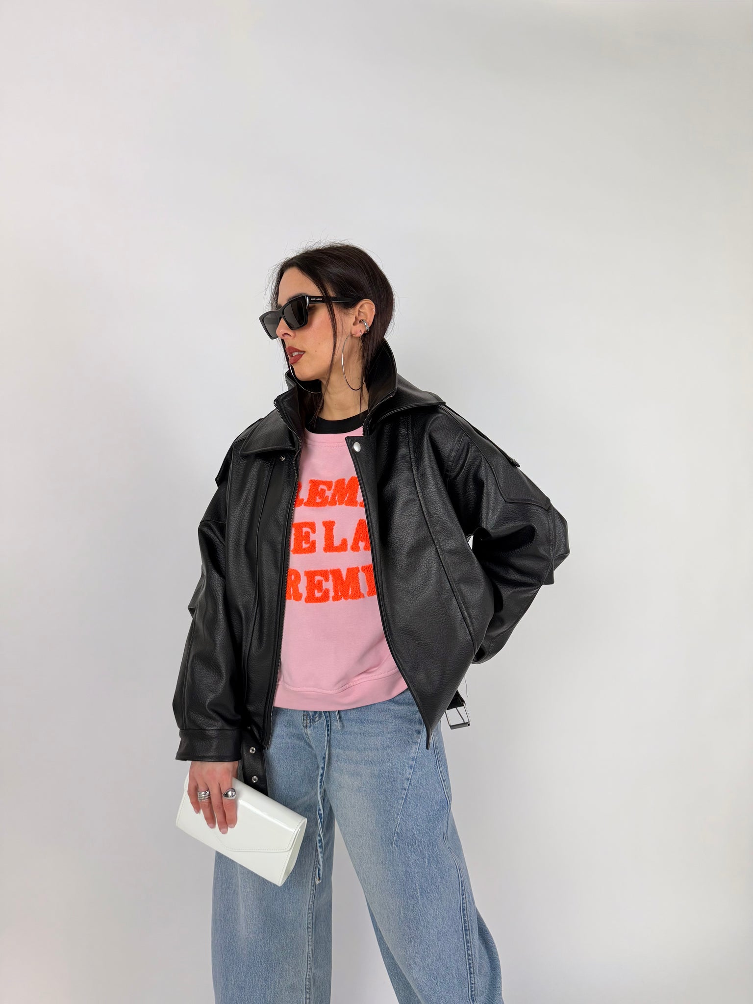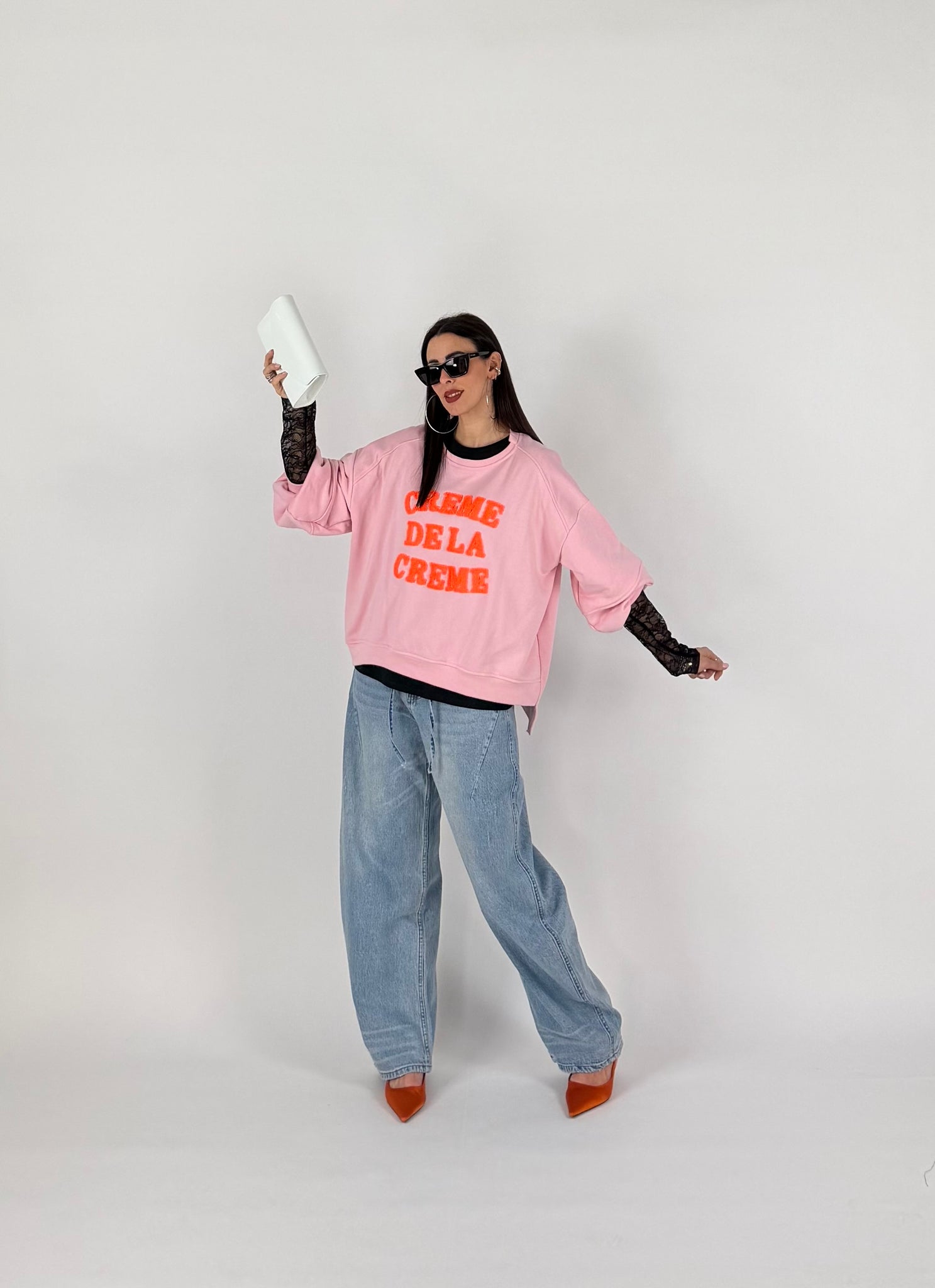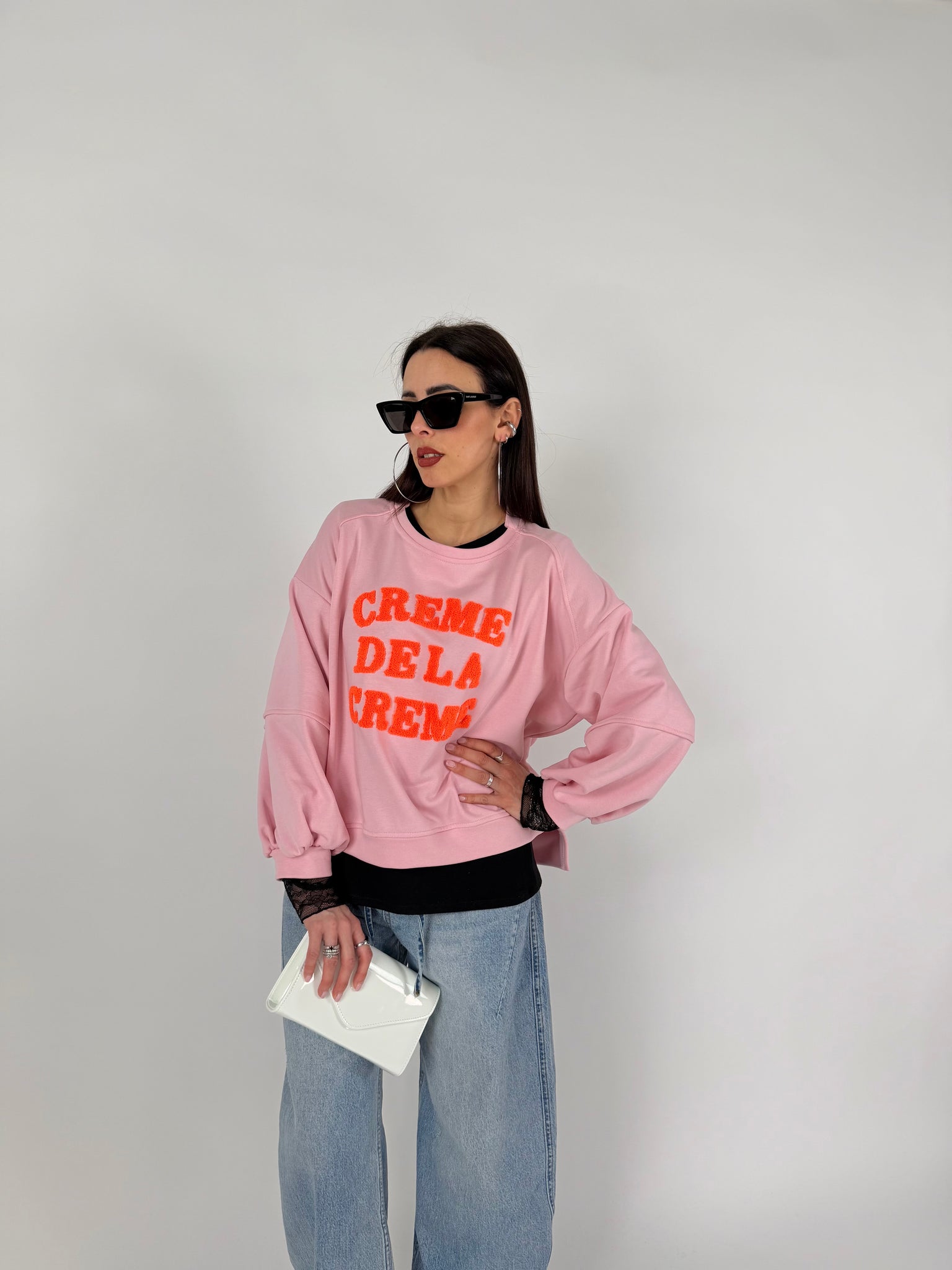 Felpa girocollo in morbido cotone garzato con scritta a contrasto in boucle. Fit morbido, taglia unica veste da 38 a 36