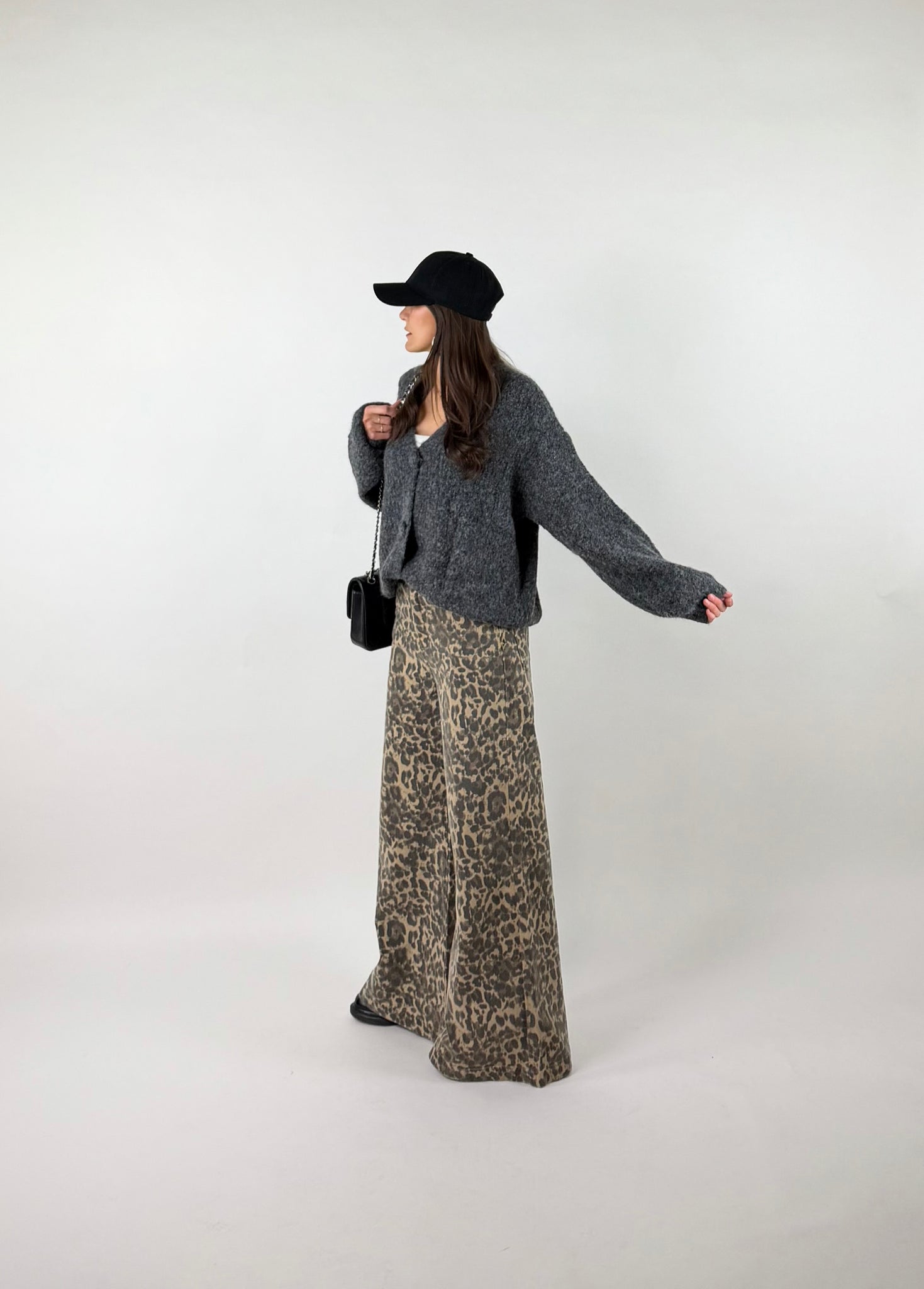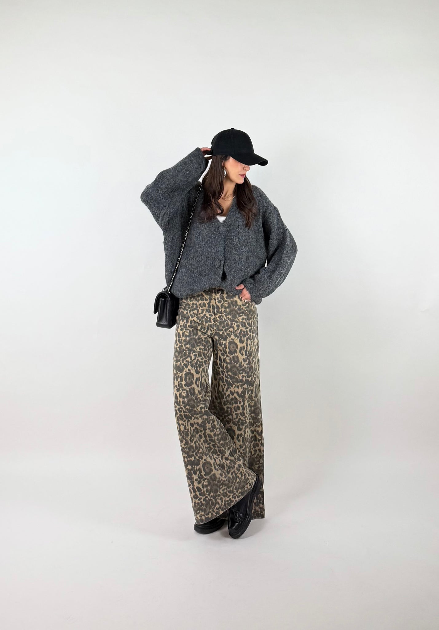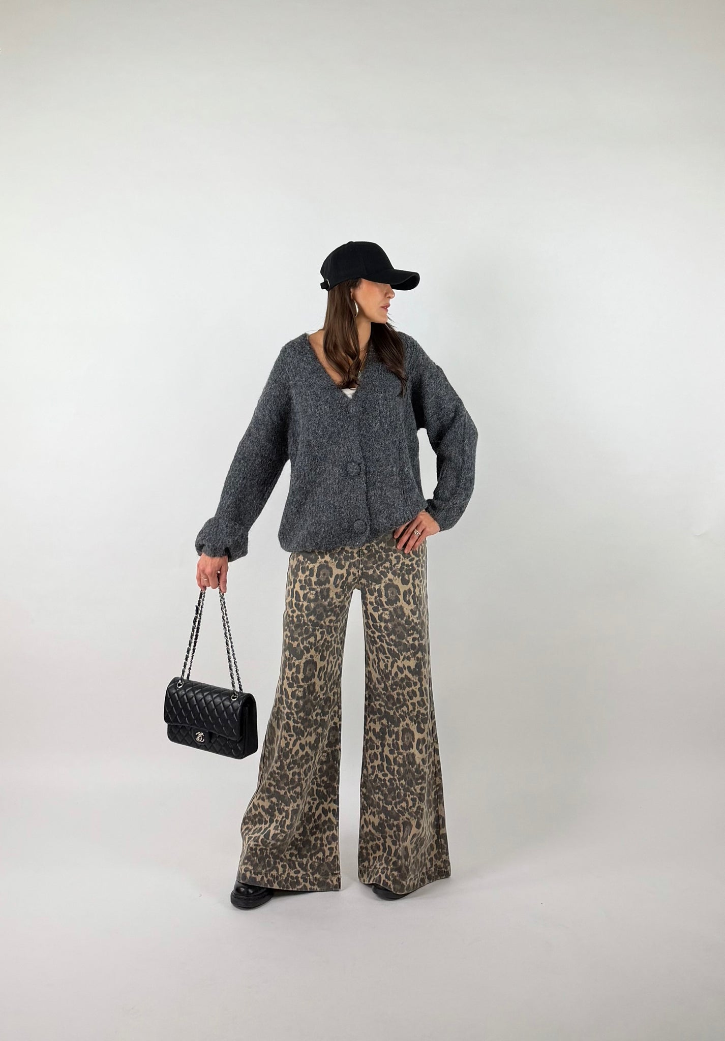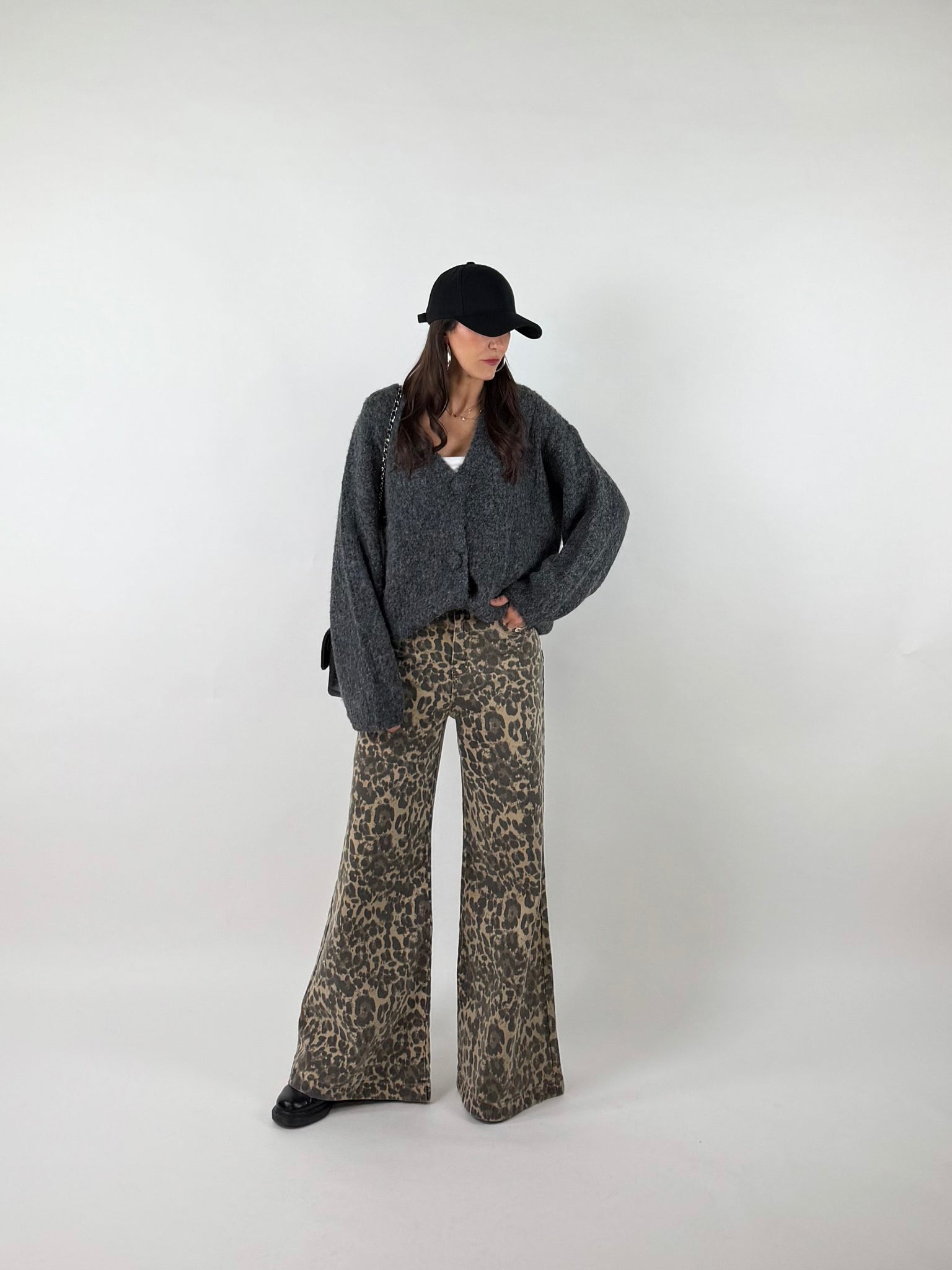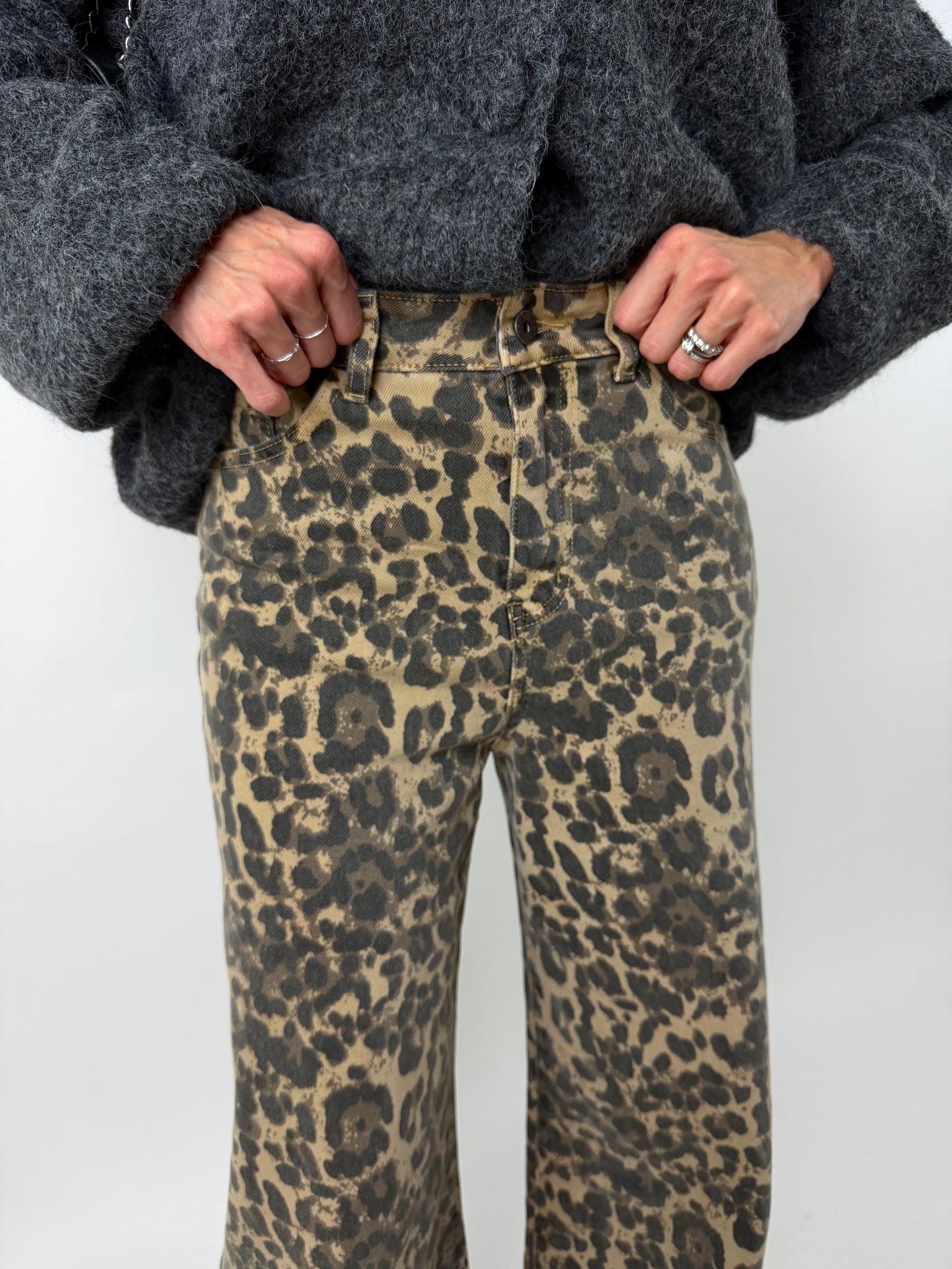 Jeans a palazzo leo print, vita alta, tessuto elasticizzato. S: 38/40 M: 42/44 L : 44/46