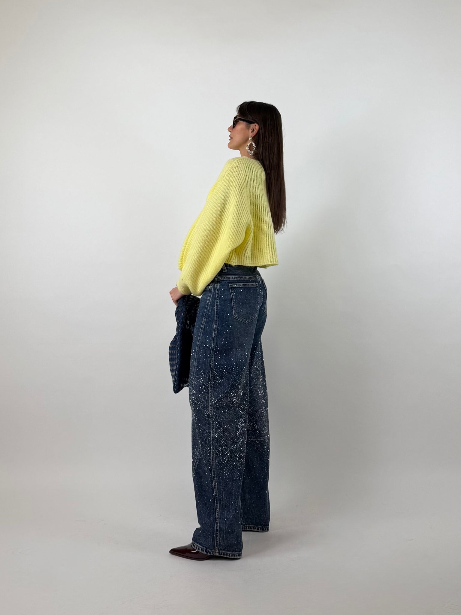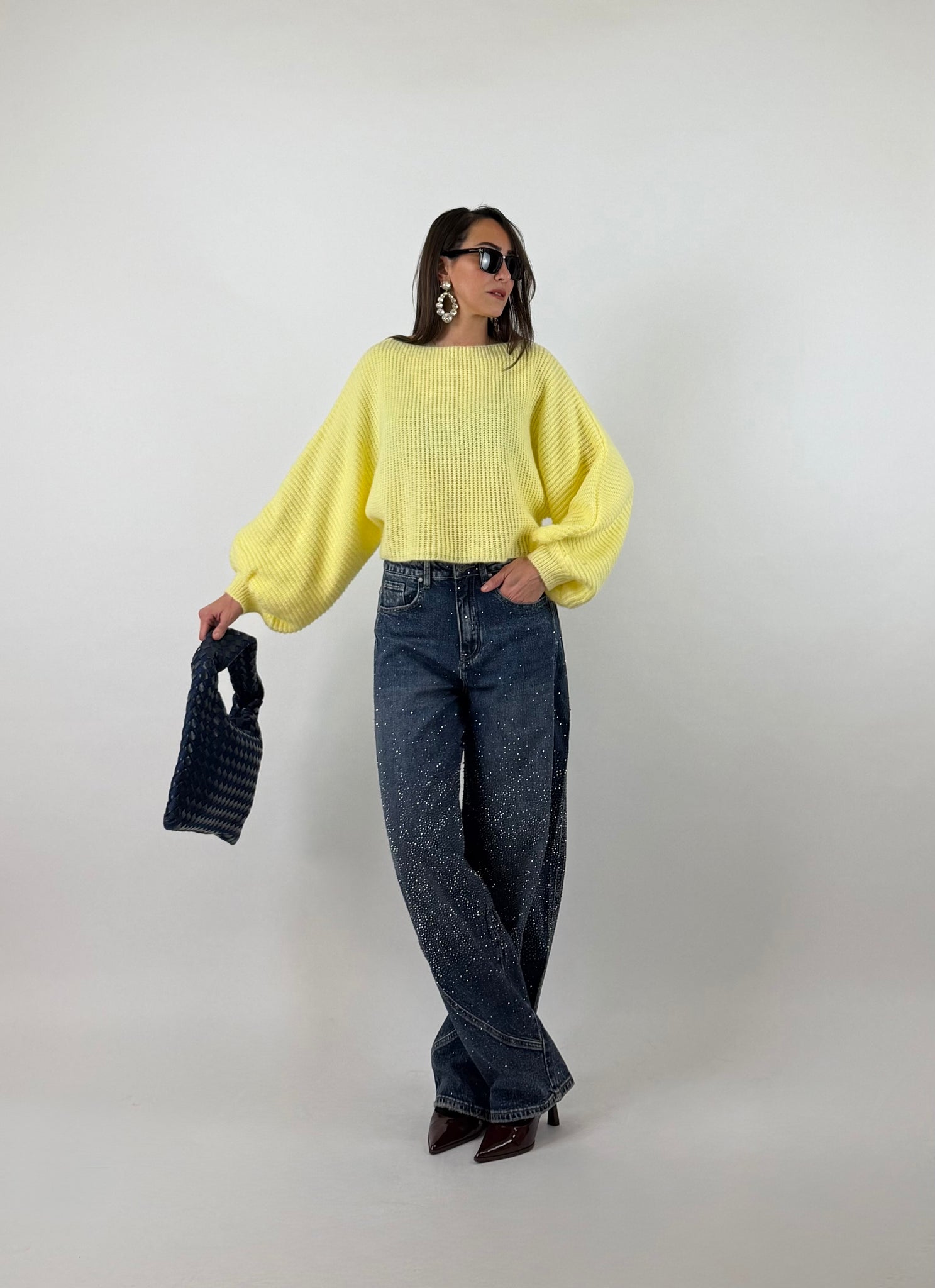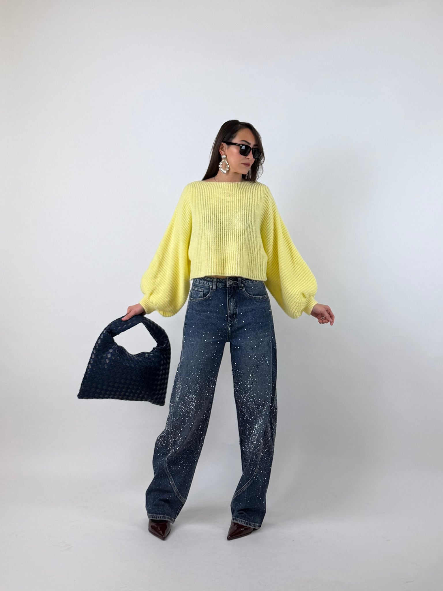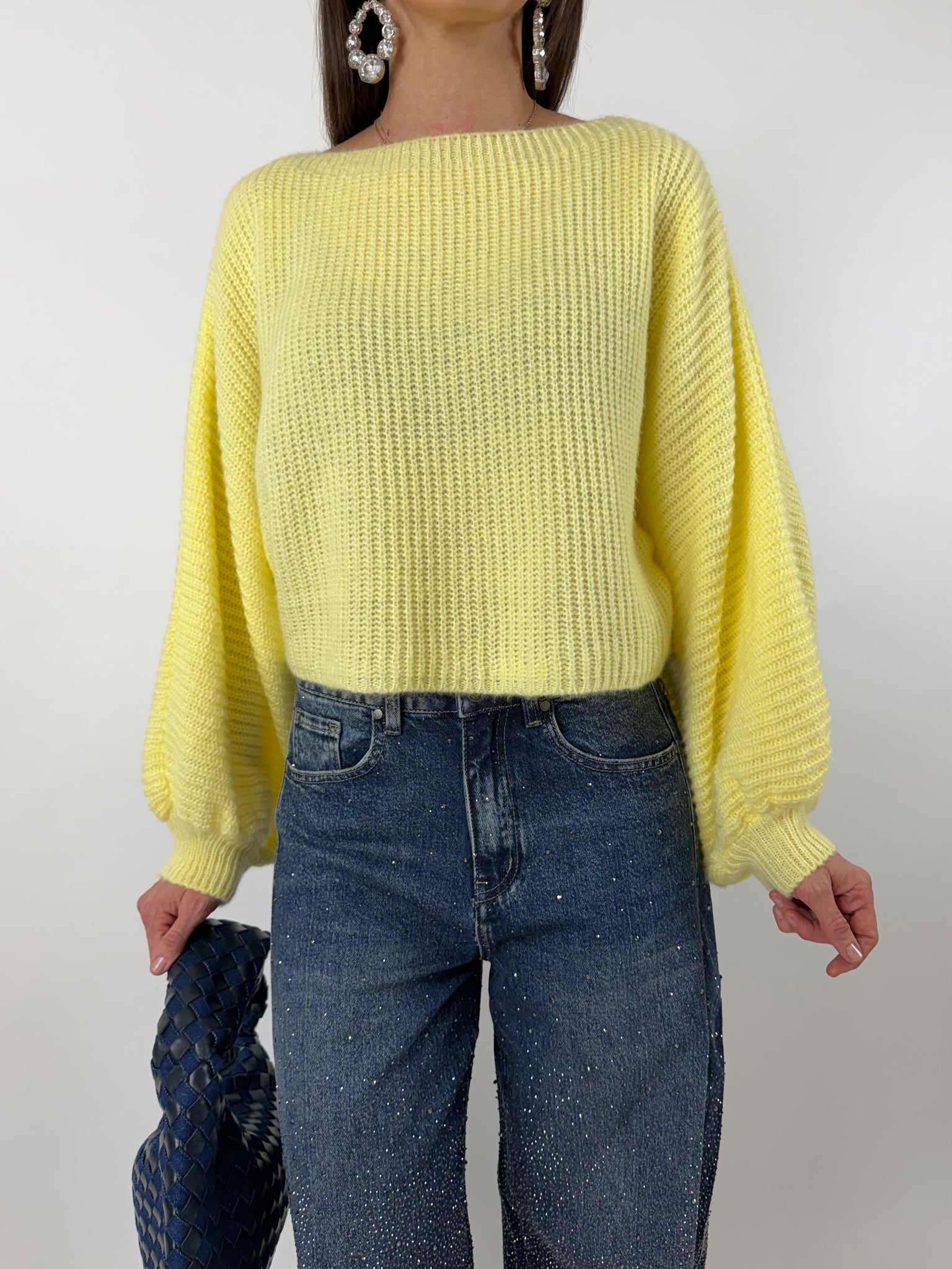 Pull tessuto a trama larga, taglio squadrato, manica ampia a palloncino. Taglia unica veste da 38 a 46