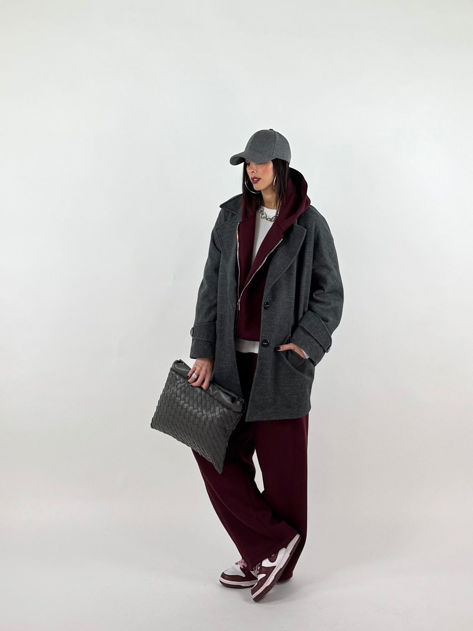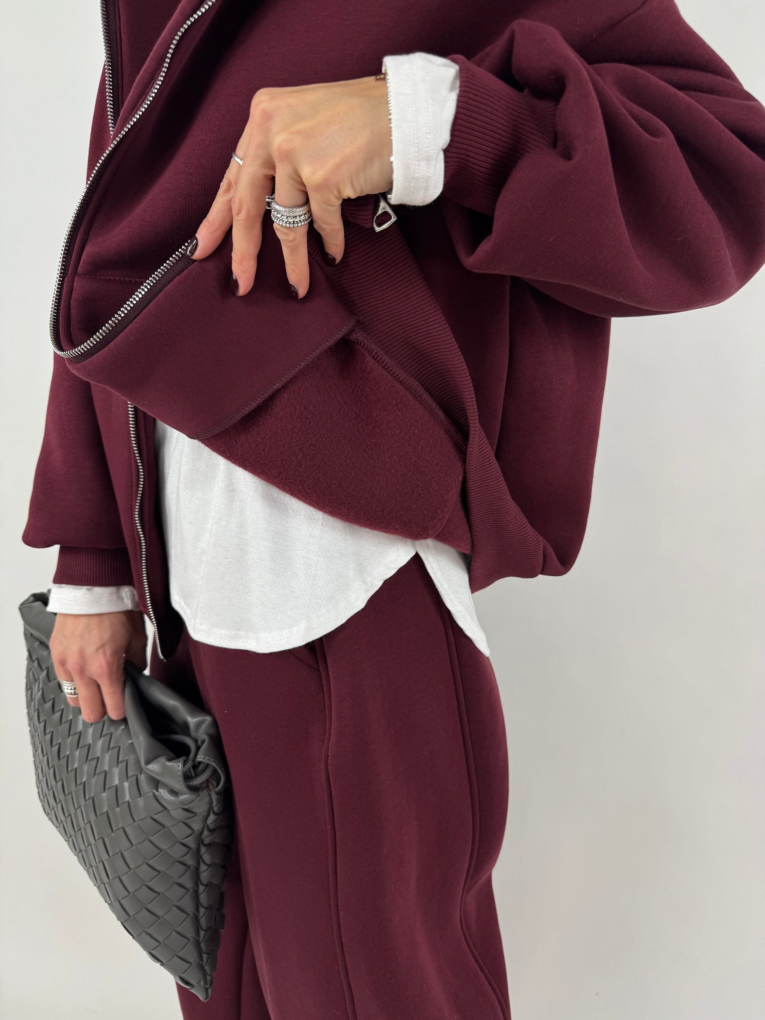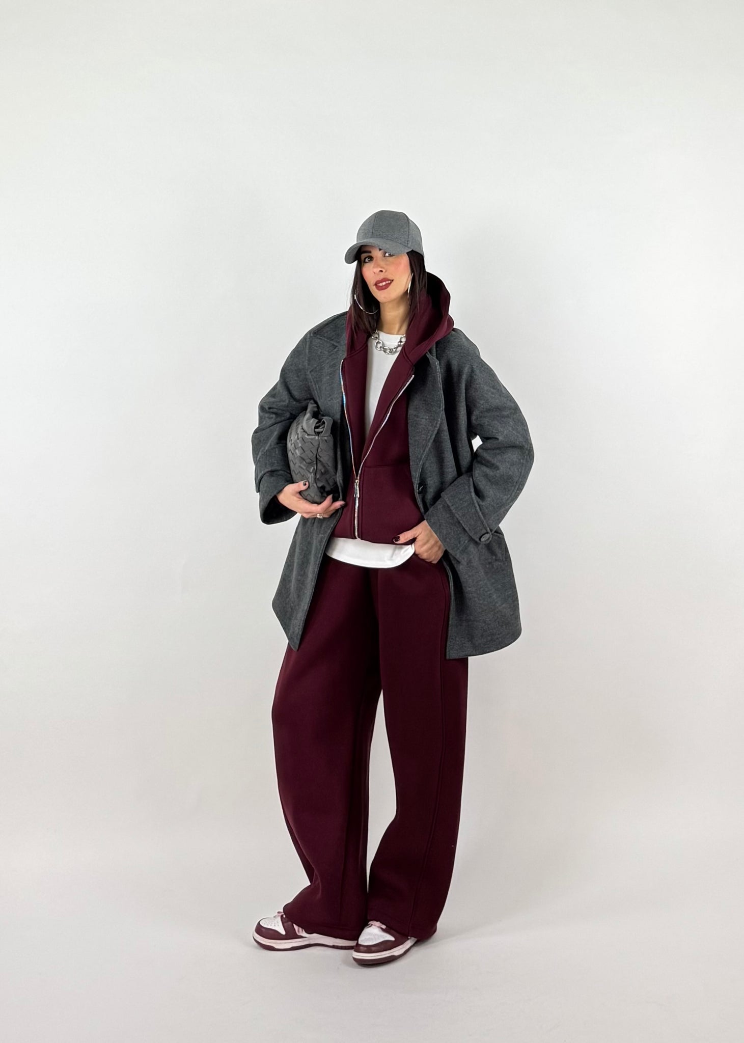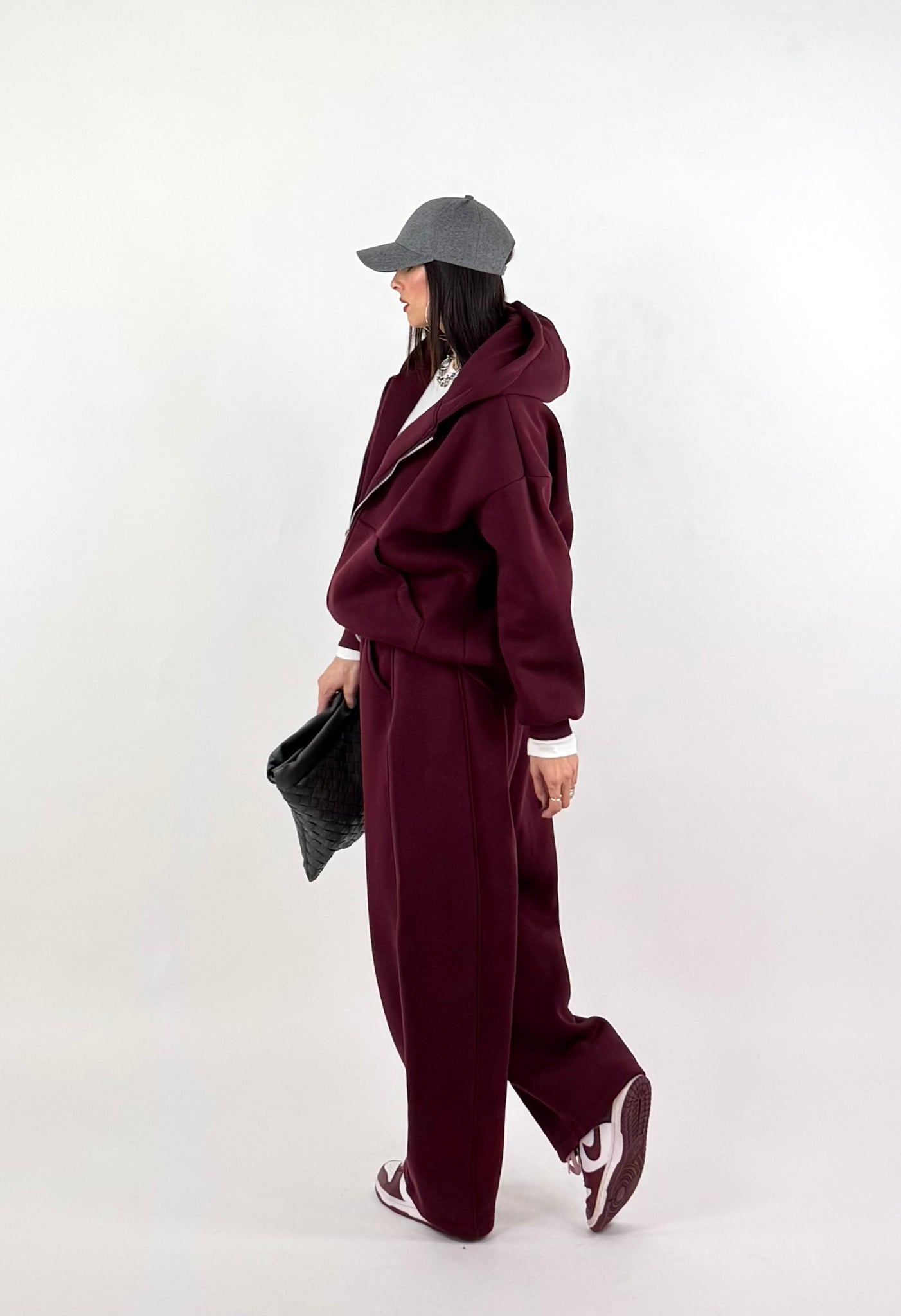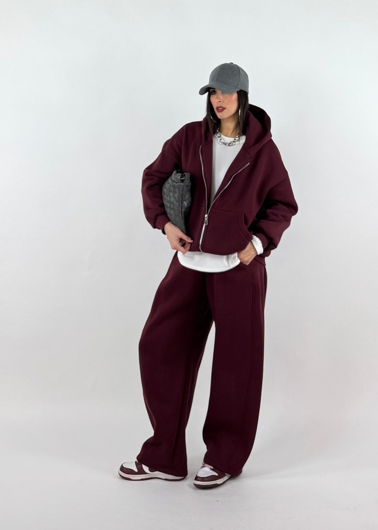 Completo tuta composto da pantalone con elastico in vita taglio balloon e felpa fit ampio con cappuccino e zip sul davanti, tessuto molto caldo e confortevole . Taglia unica veste da 38 a 48