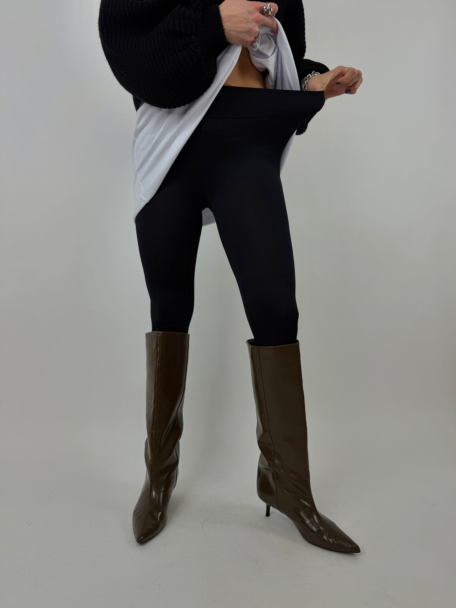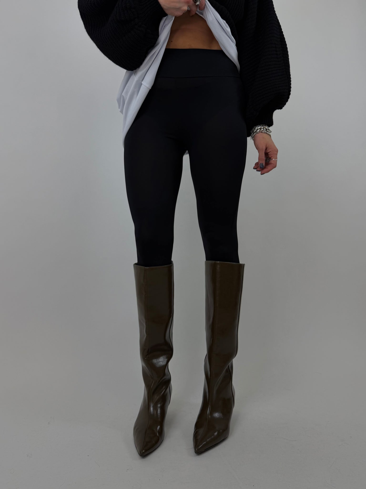 Leggins dal taglio basic, fascia alta in vita morbida ed elasticizzata. Taglia unica veste da 38 a 46