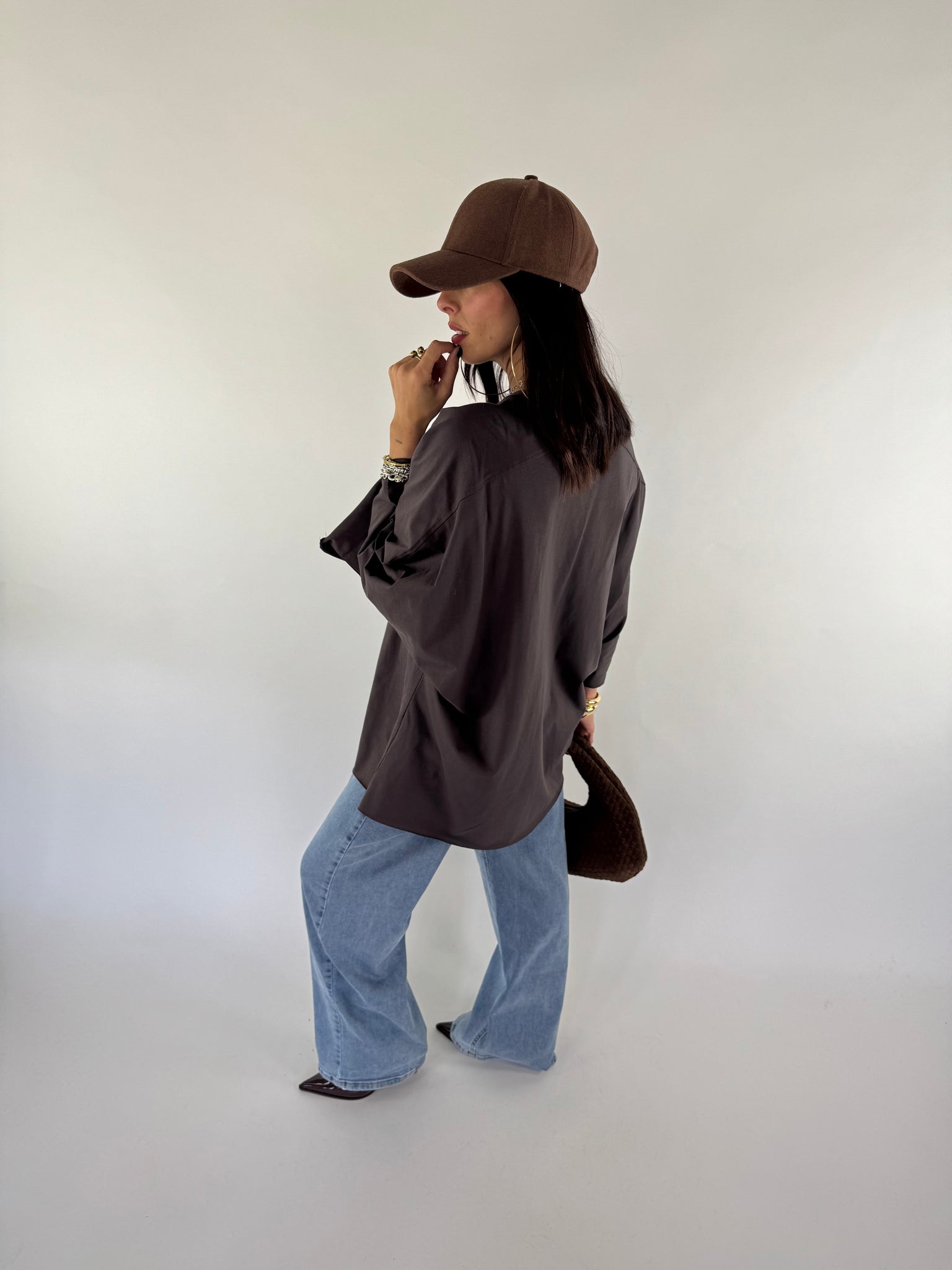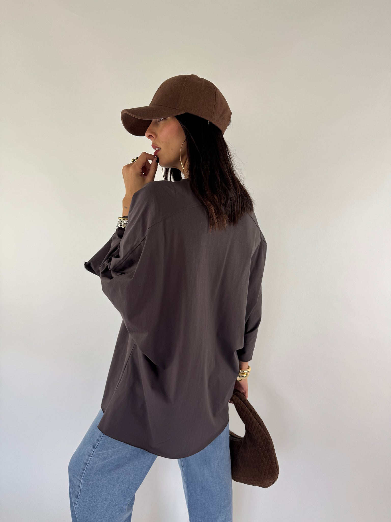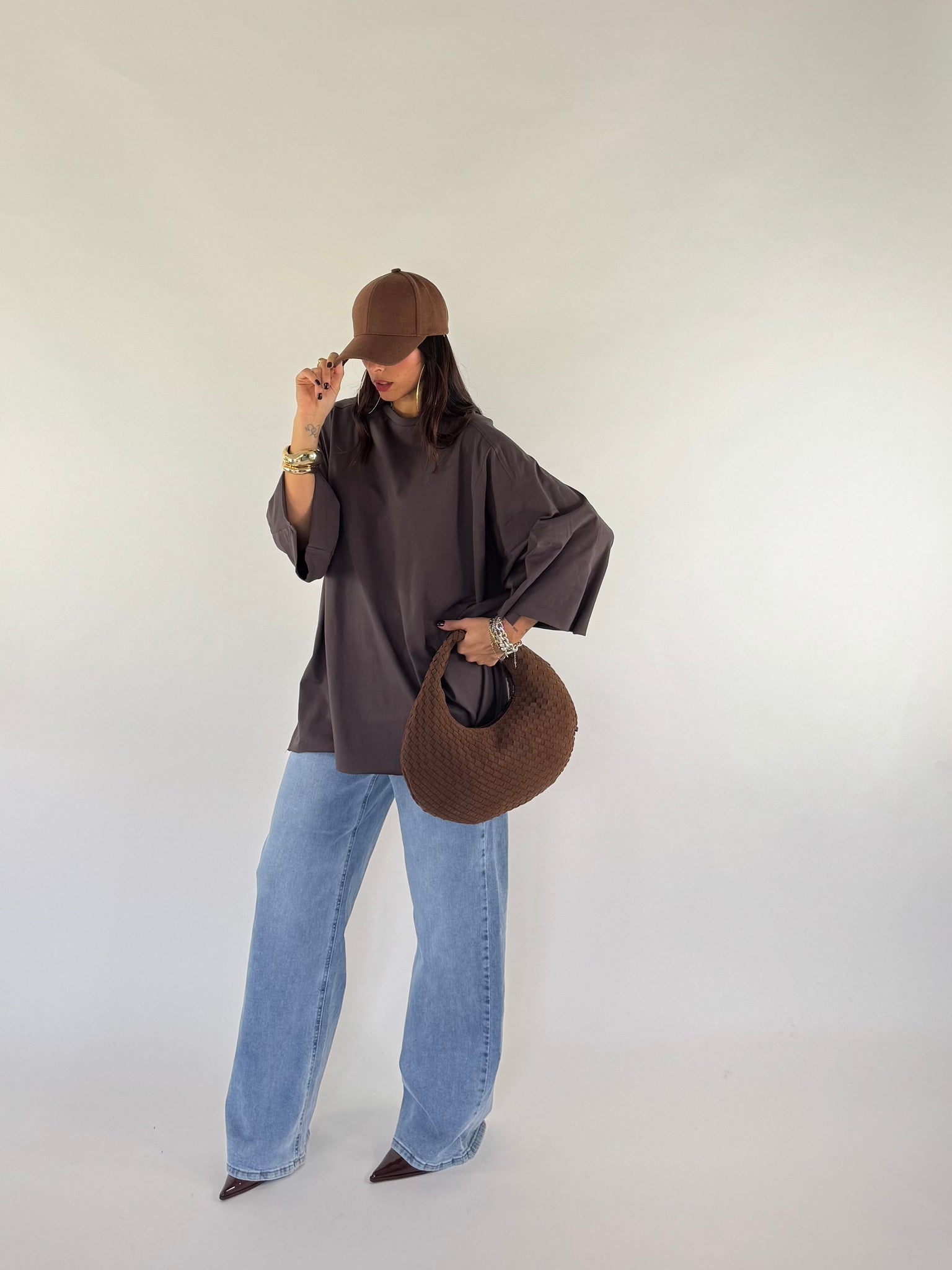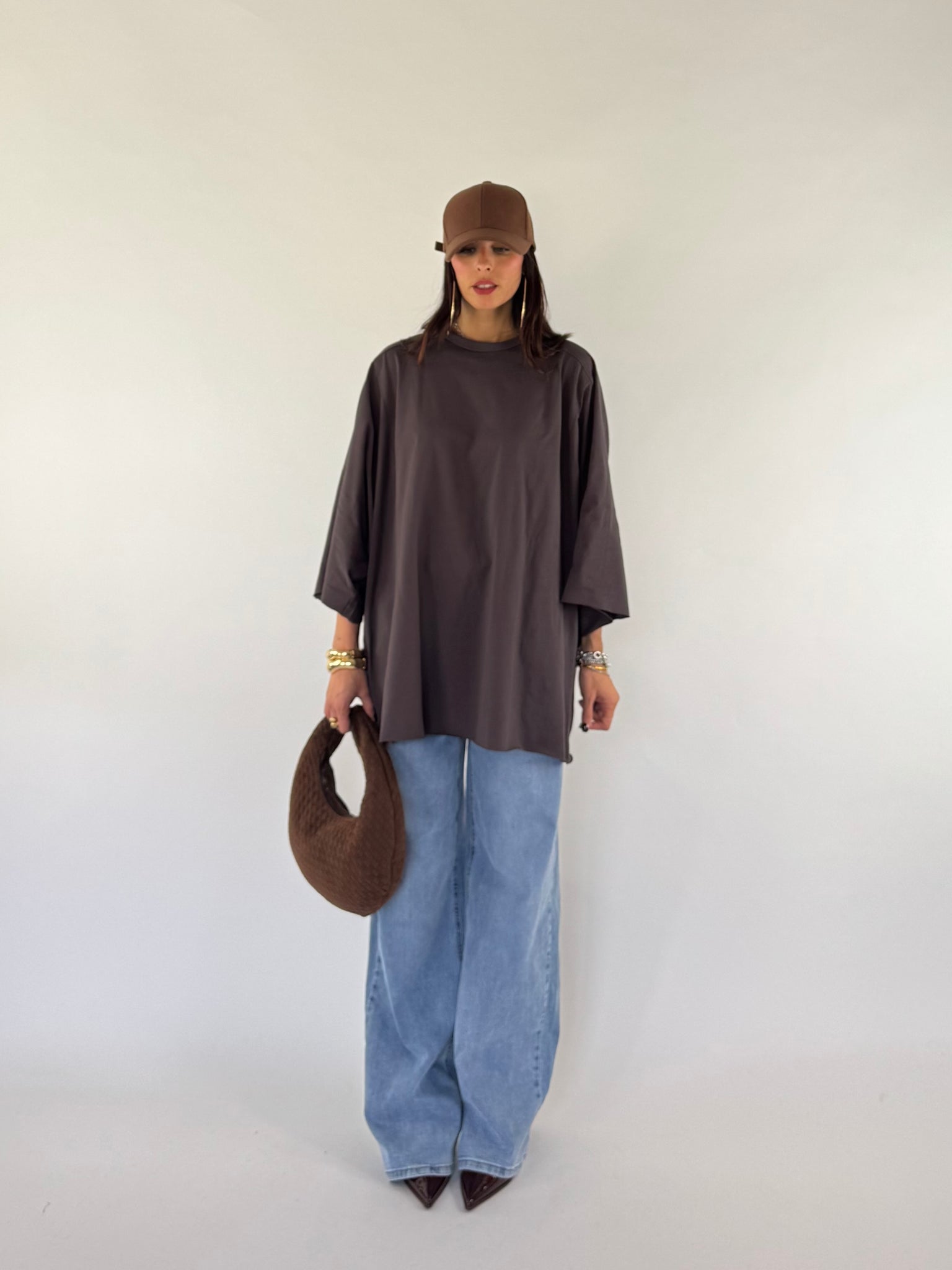 T-shirt girocollo modello over, manica lunghezza gomito, orli a taglio vivo. TU veste da xs a xxl