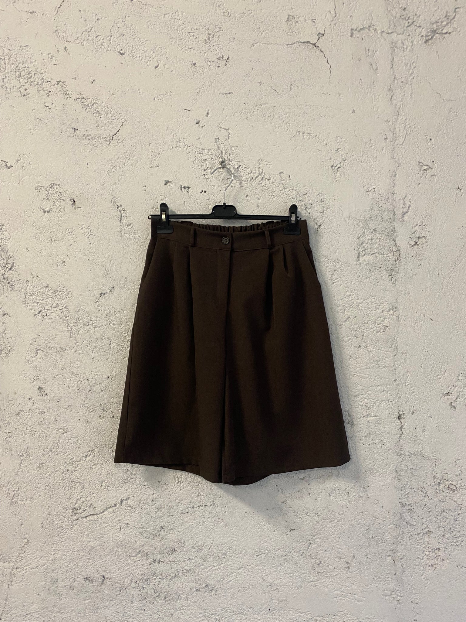 Bermuda con elastico sul retro in vita , leggere pence sul davanti,tasche a filo. Taglia unica vestibilita dalla 38 alla 46,circonferenza vita con elastico teso 100cm